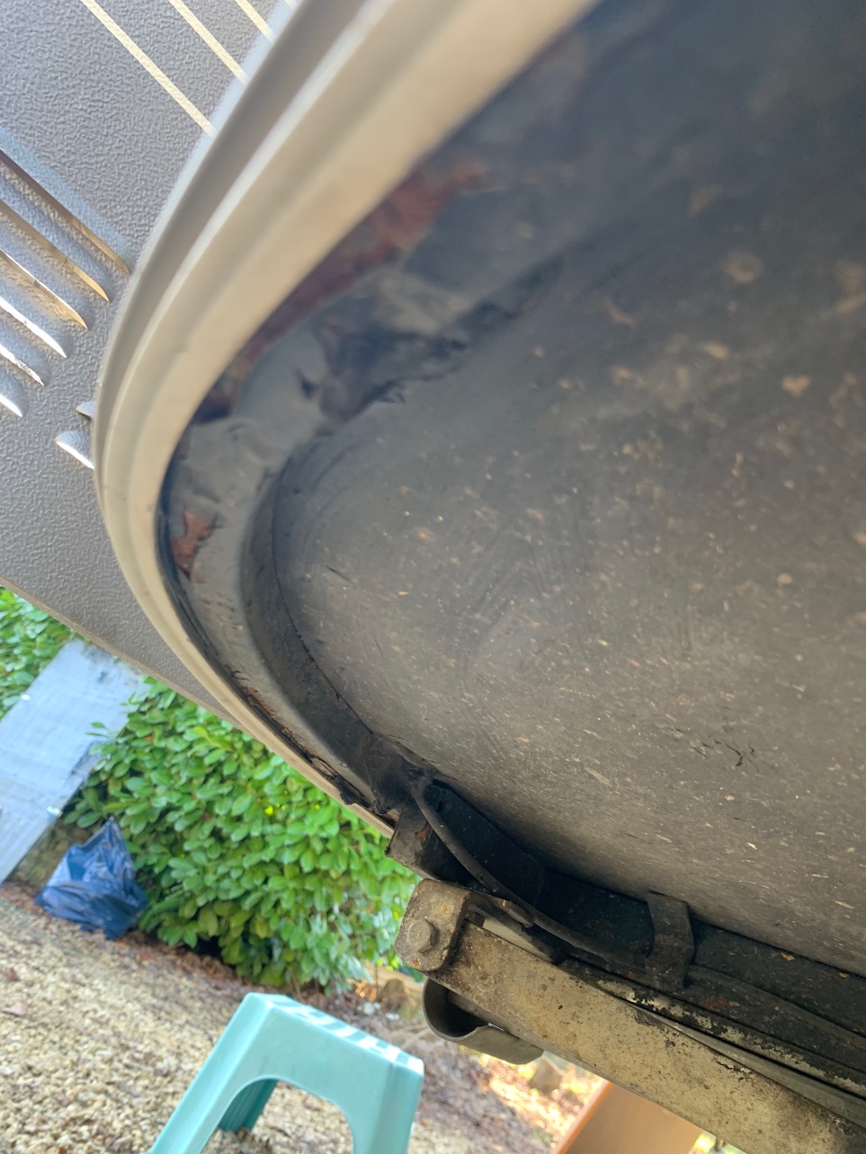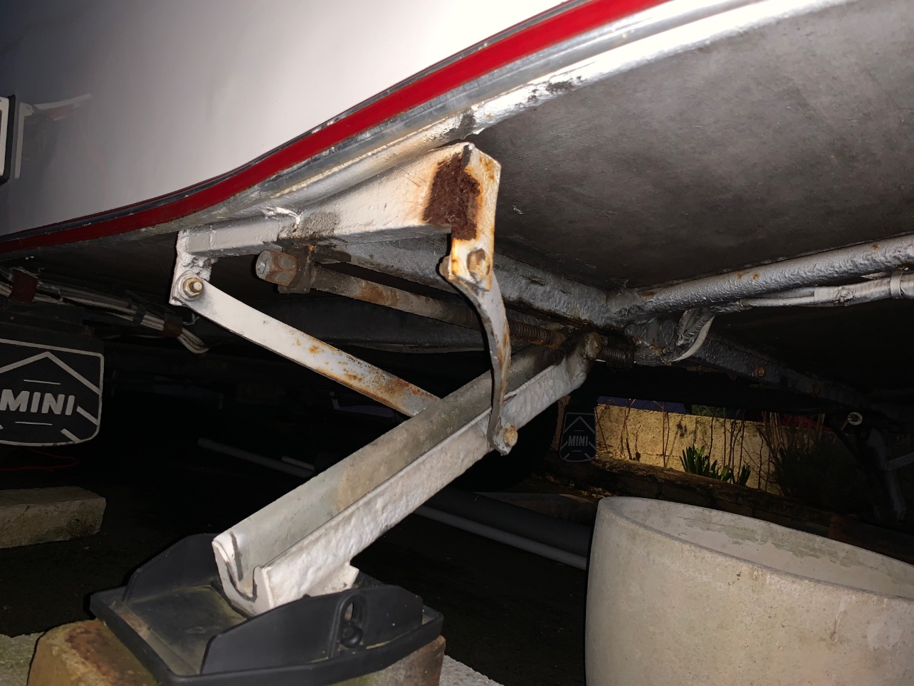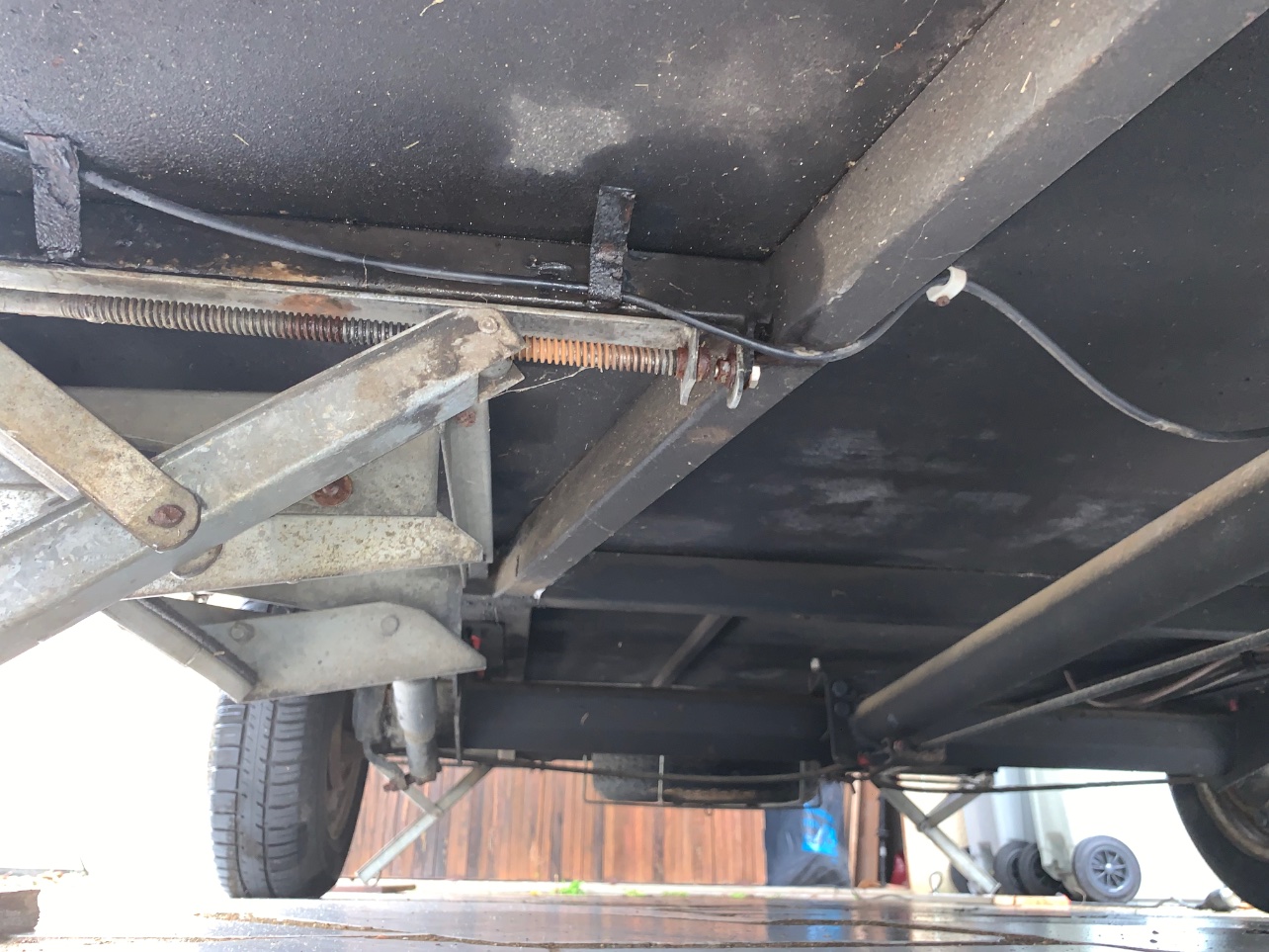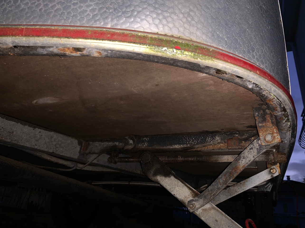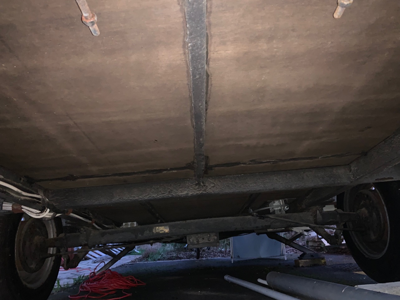 C’est quand même incroyable, tu déposes complètement une caravane pour en refaire jusqu’au plancher et tu te contentes de badigeonner le châssis de goudron.