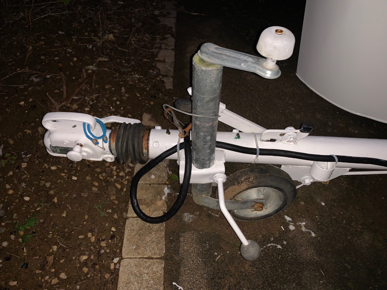 Le vendeur est rentré hier soir de Pont Aven, tempête sur l’autoroute, le coffre à gaz a sauté… il manque la partie gauche (c’est un coffre qui s’ouvre sur la partie latérale gauche)