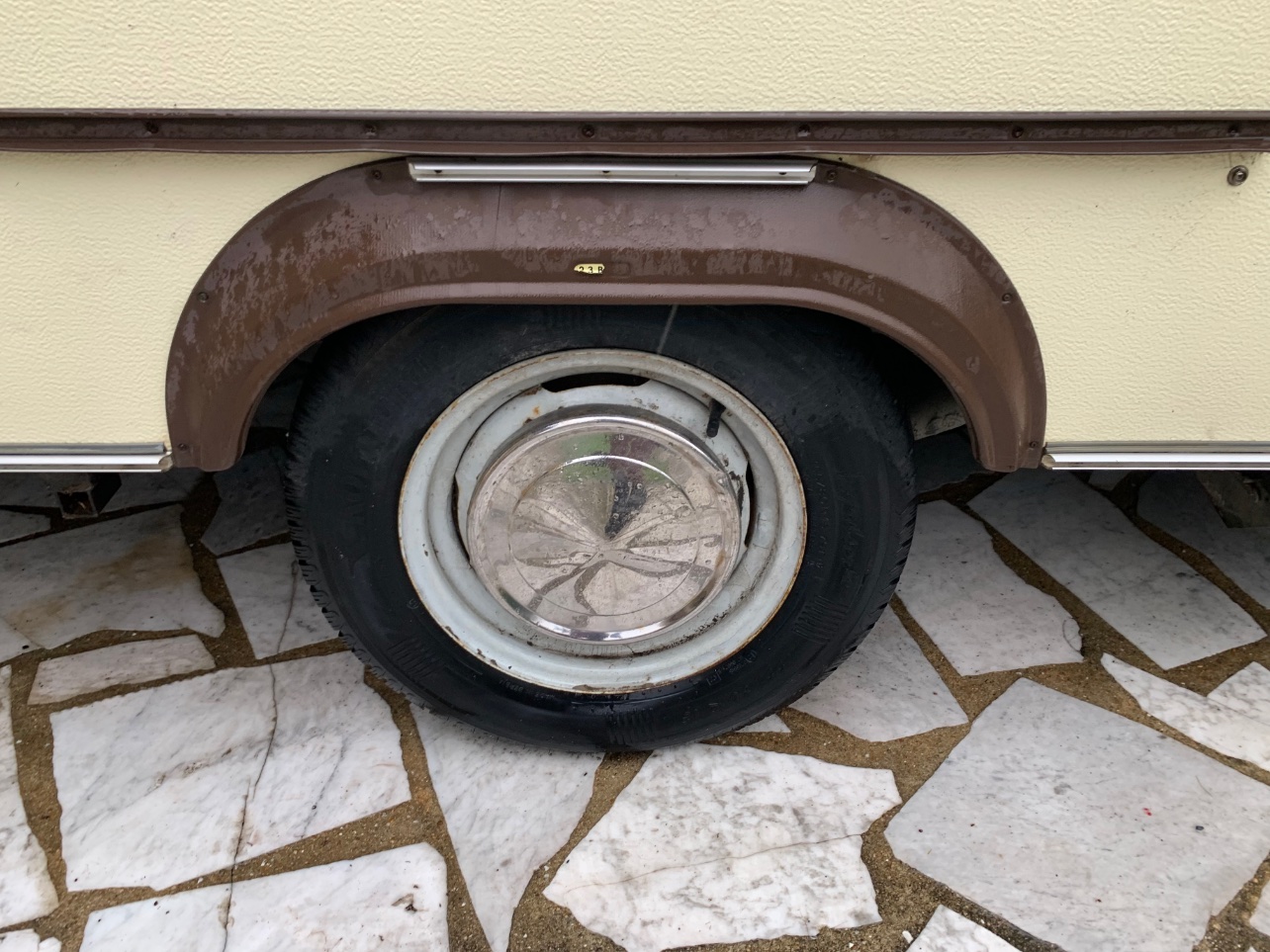 C’est quand même incroyable, tu déposes complètement une caravane pour en refaire jusqu’au plancher et tu te contentes de badigeonner le châssis de goudron.