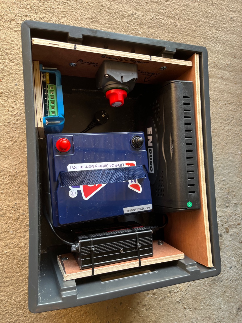 Après mûres reflexion , j’ai choisi de placer tout l’attirail électrique dans un même bac .