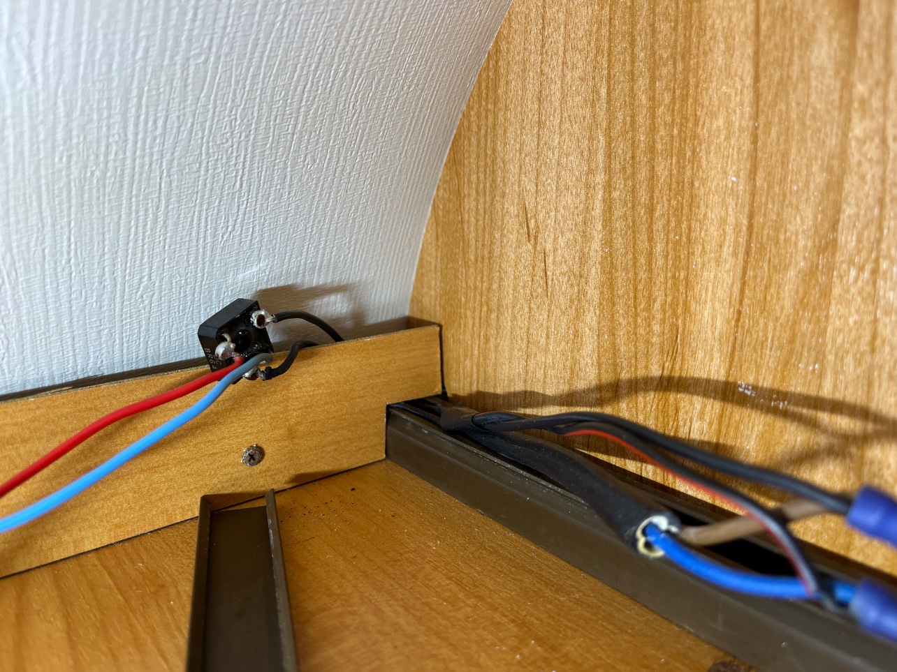 Ensuite passage des cables à l’intérieur, derrière le placard remonté .