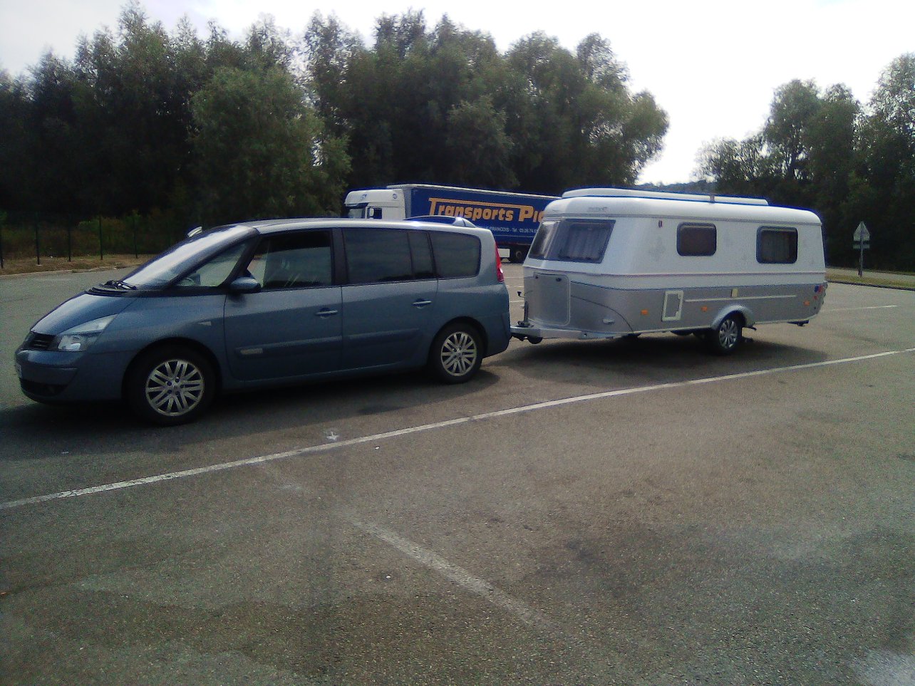 Voilà l'ensemble T5 h1L2/Pontos 660, j'aime assez, c'est presque le même gris métallisé sur les deux...par contre c'est long ! 5,30m le tracteur et 6,00m la caravane