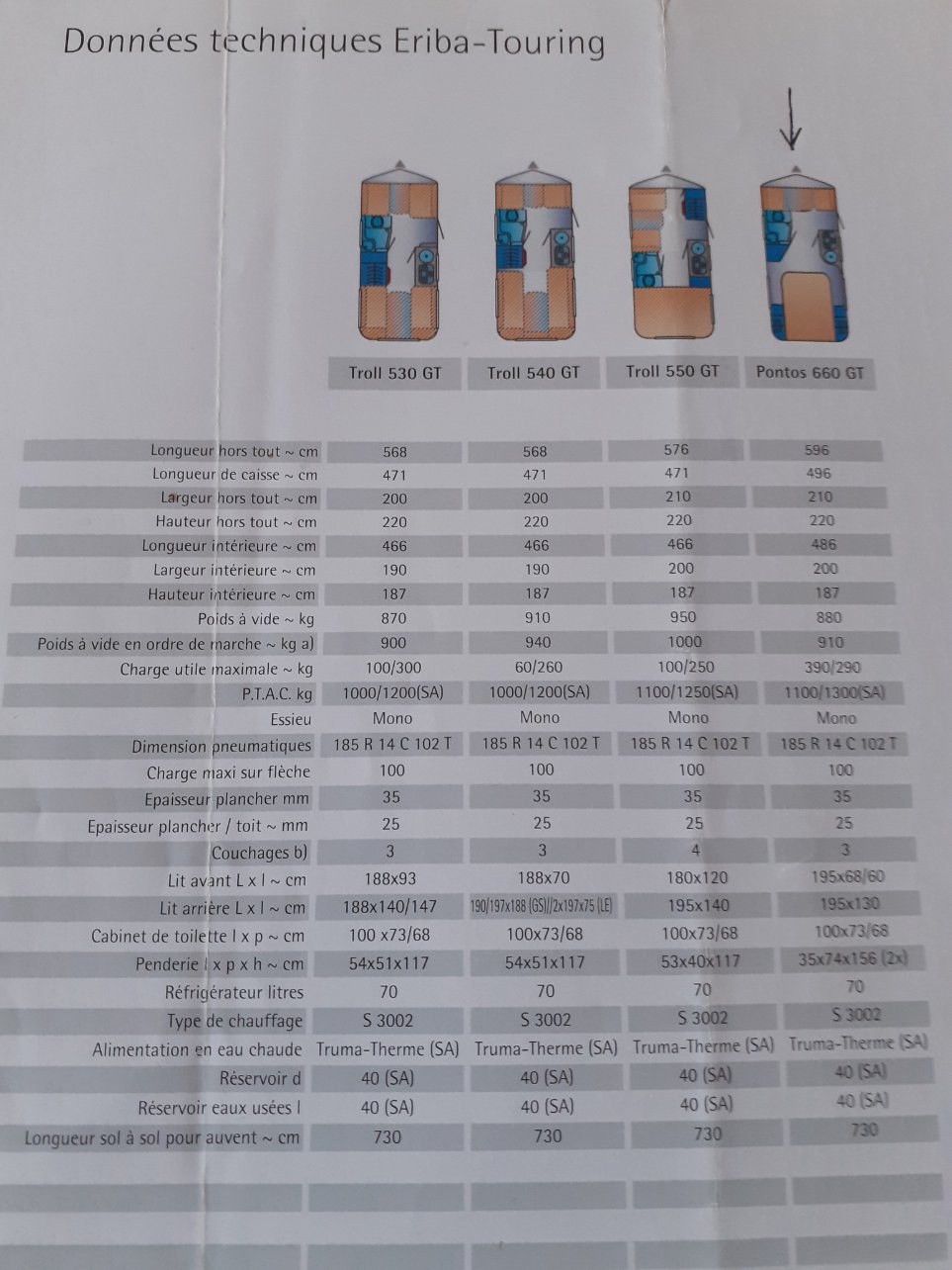 Tu as un autre modèle de Troll, la FEY (forever young) apparue en 2008 2.10m de large et 2.25m de haut. Le modèle décrit dans ton tableau a été construit jusqu'au printemps 2010 conjointement avec la Troll Fey (cessation d'activité à Cernay). L'Allemagne ayant pris la suite de fabrication de nos coquilles et uniquement pour les modèles "FEY"