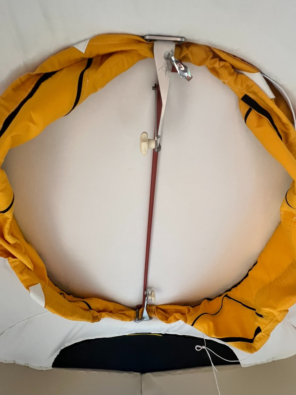 Pour l'élastique, une fois le champignon déployé, ça va tout seul pour l'ajustement. J'ai relié les 2 bouts avec un nœud de pêcheur. => 2pécable !