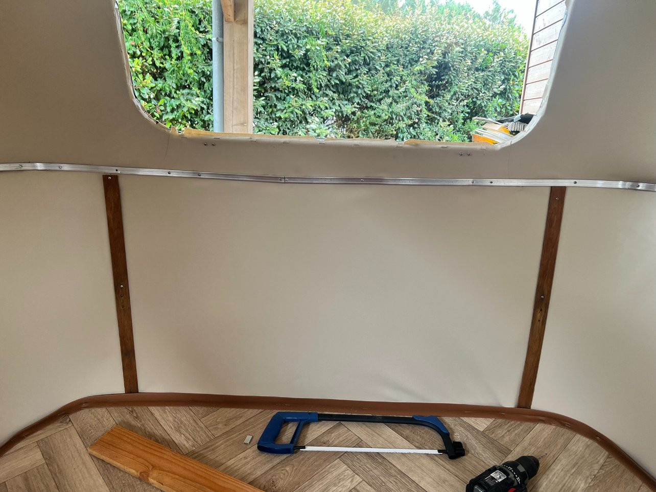 Petite photo pour Yann (et les autres aussi), me suis enfin décidée à couper l'excédent de rail sous la baie arrière, non sans y aller à reculons...