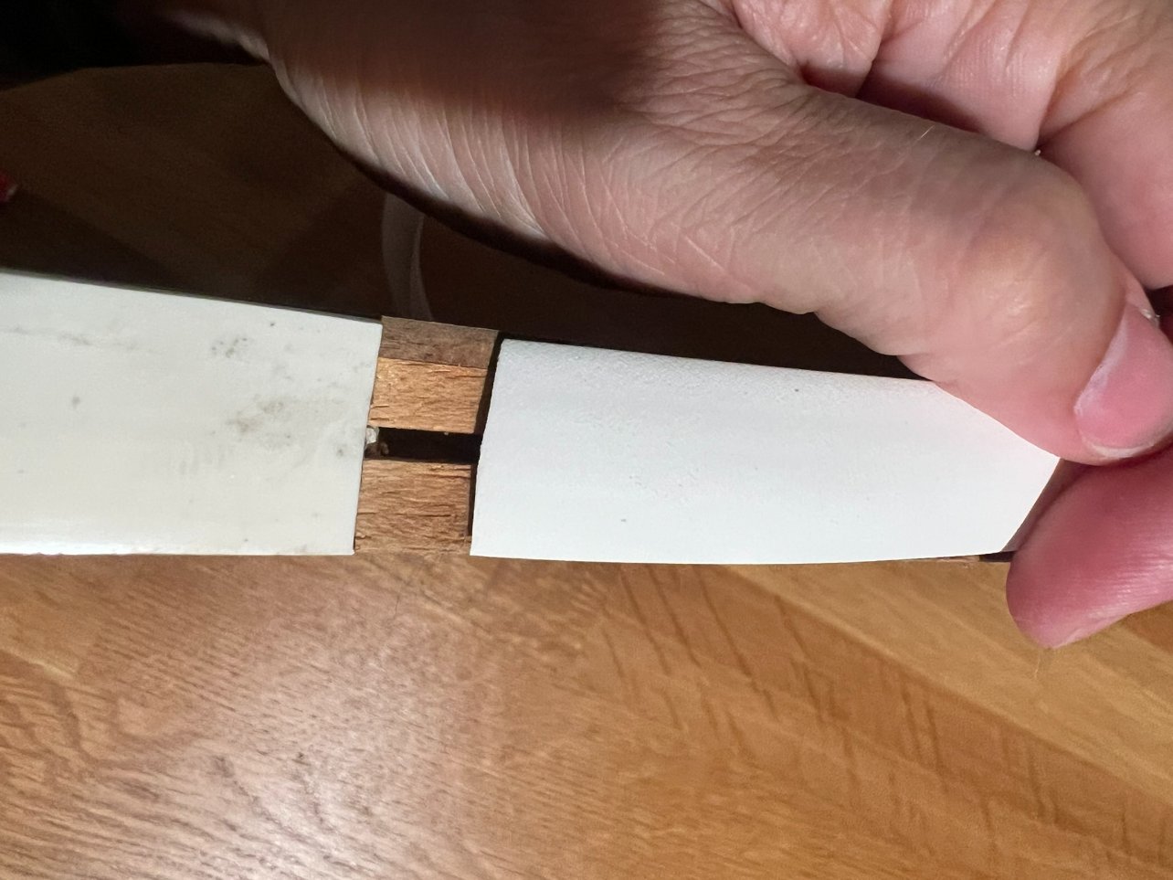 L'écart de 1 à 5 cm, c'est le retrait. la température idéale pour la pose, il faut que tu doubles (température intérieure d'une caravane stationnée au soleil). Sinon, tu prends un vraiment bon cm de plus, tu poses les 3/4 puis comme pour ton rail, tu enquilles le ou les bouts et tu repars à l'envers éventuellement en t'aidant d'un sèche-cheveux pas trop chaud que tu ne laisses pas en stationnaire à un endroit précis et d'un maillet caoutchouc pas trop violent