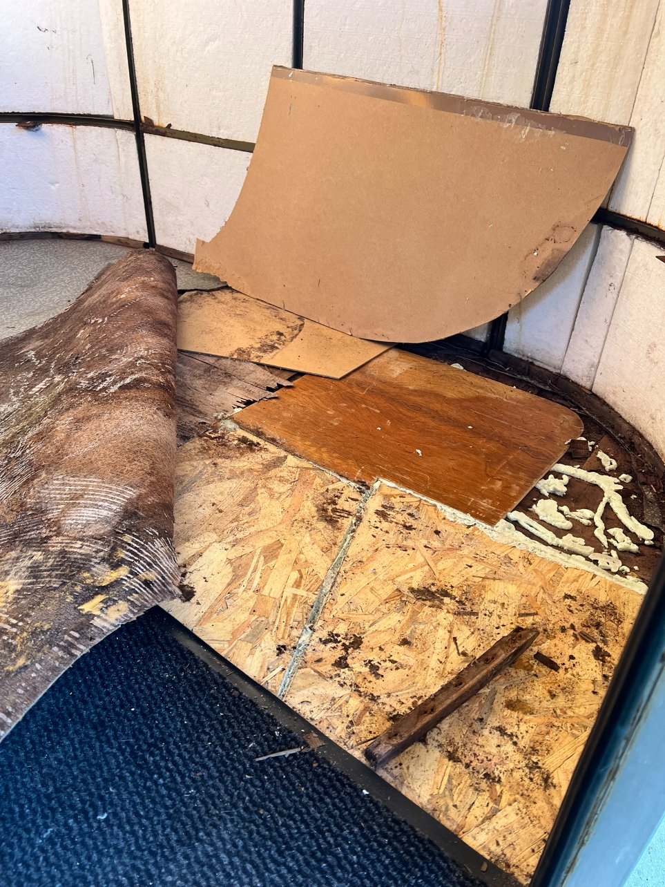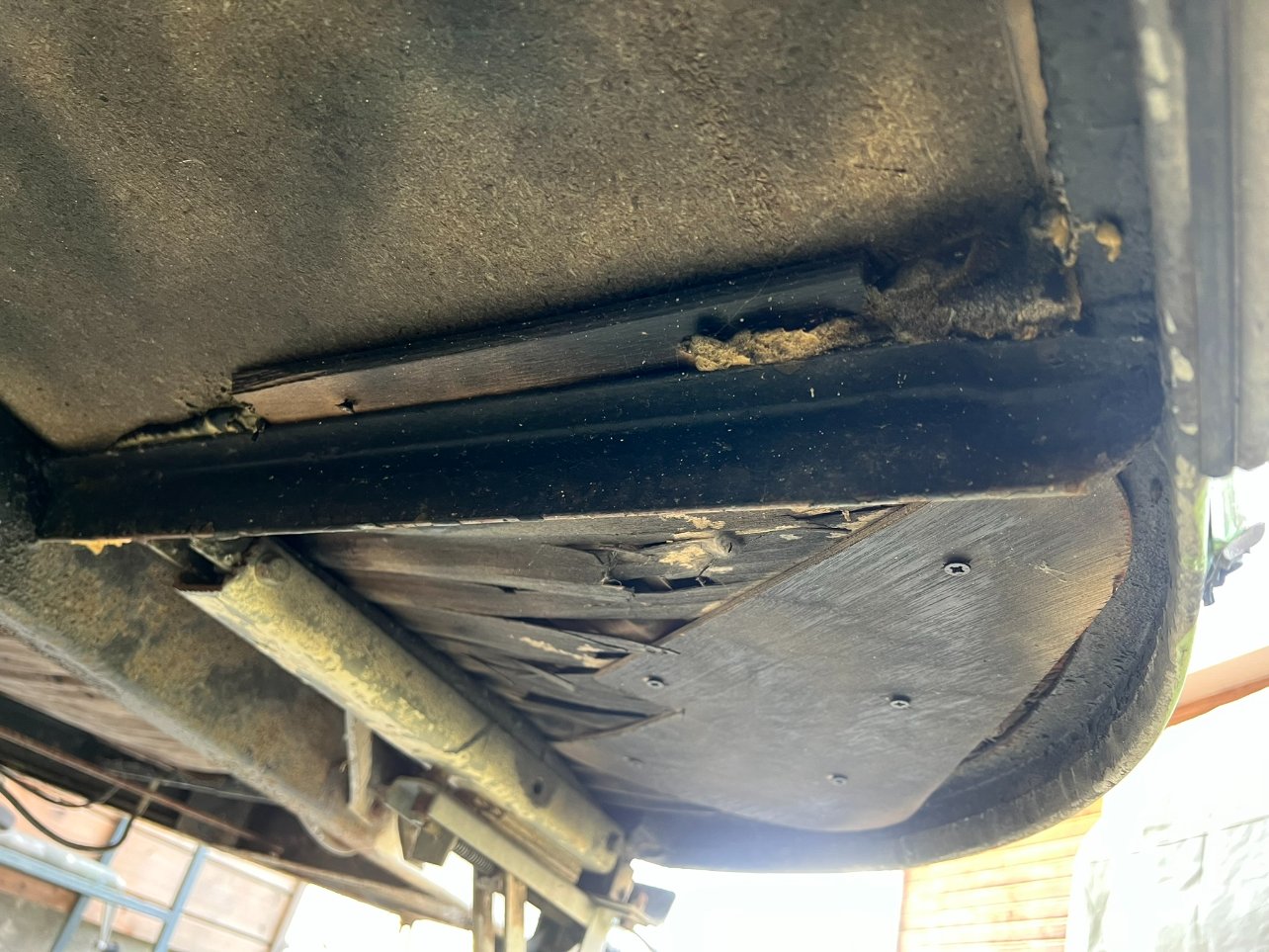 J'ai donc Coralie depuis bientôt trois ans, toujours stockée au sec (hangar, abri et juste un été dehors). Nous avons fait 2 week-end de rétro-camping avec elle et une autre sortie (après changement des pneus), en dehors du changement de plancher, nous avons vu tous les points à refaire, surtout l'eau qui rentre un peu partout (d'où le plancher fatigué à plusieurs endroits).