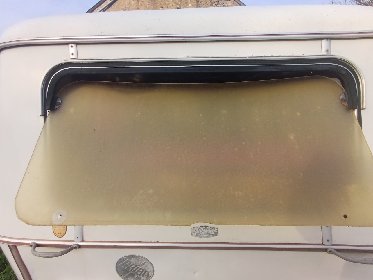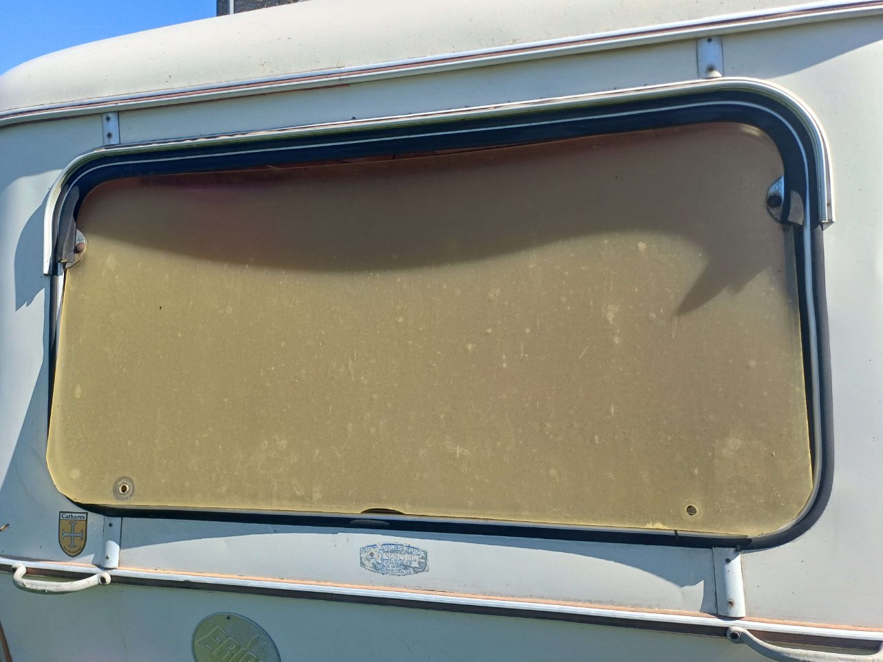 La baie arrière de mon Eriba Pan de 1974 avait été changée par l'ancien propriétaire. C'est un morceau de plexiglas mal découpé qui a été installé, l'eau ne rentre pas mais par contre c'est tout un écosystème qui s'installe chaque année dans ma caravane : punaises, fausses coccinelles, guêpes maçonnes, frelons, bref tout y passe...