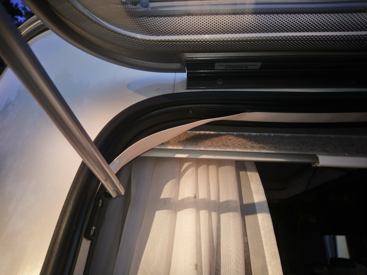 J'ai eu le problème au dessus de ma vitre latérale, la découpe du toit n'est pas parfaite sur le pourtour, et comme tu avais de l'eau même avec le scotch ...
