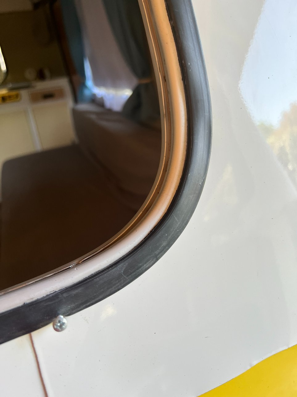 Et là on se dit "tadam" car on est contente, il m'aura quand même fallu presque 2 heures pour tout faire avec la chaleur et quelques pauses méditatives. Par contre il faut que je vérifie les joints au niveau des charnières, voici ce que ça donne chez moi : Voici ce que j'ai vu sur une grosse rénovation où la personne fait comme Eribasar : Sur Sunny avant le démontage (bon elle n'avait plus grand chose et l'eau rentrait...): Sur la Puck que j'ai récupéré il y en a plus que Sunny mais pas autant que sur le tuto, c'est comment sur les vôtres ?
