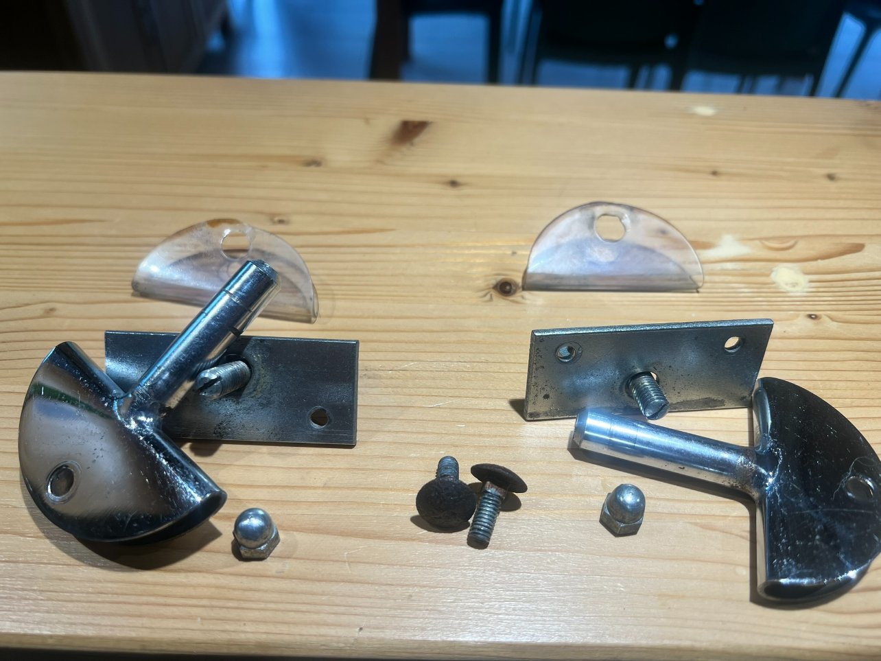 Pour celui devant la glacière à fleurs, j'ai acheté une planche de CP, je vais faire une porte et on verra après si je laisse comme ça ou pas... Ensuite j'ai terminé les joints cache vis arrière et j'ai posé les nouveaux triangles (dans les trous des anciens).