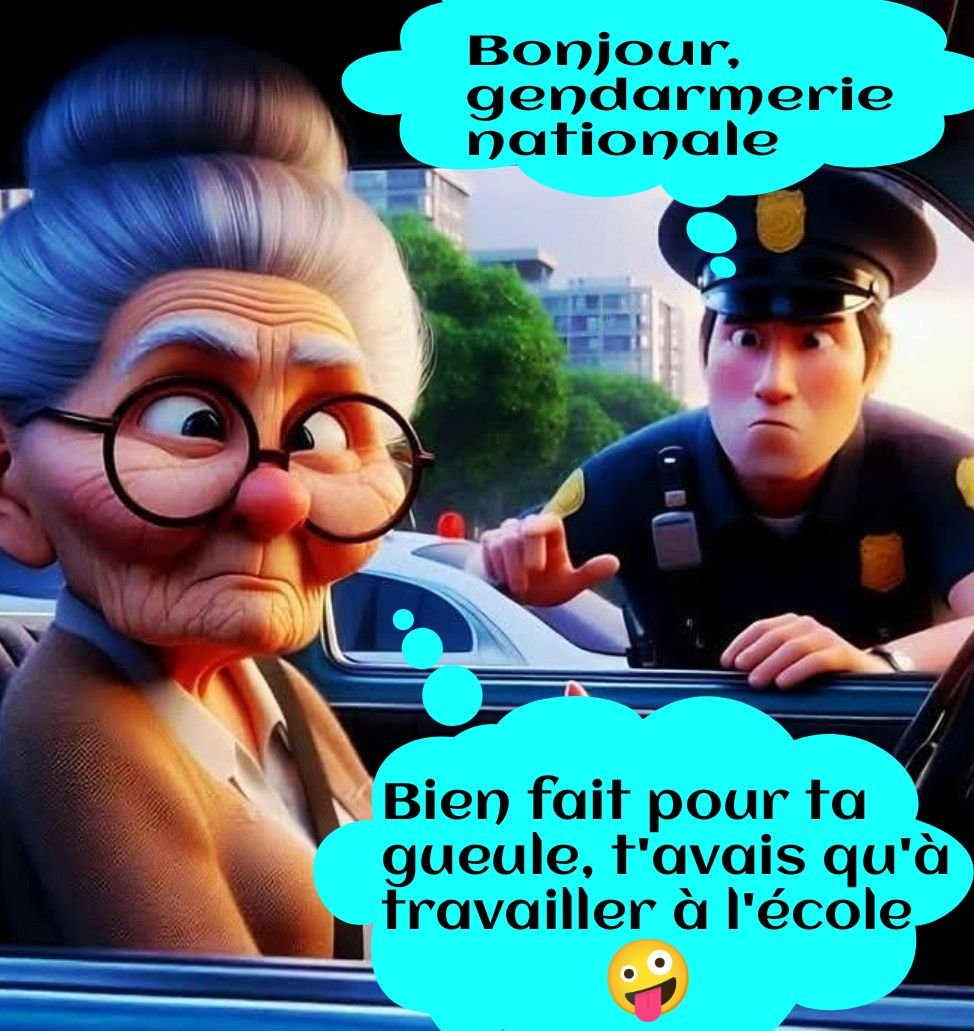 – T’as une amende, mais je te donne une chance. Si tu réponds a ma devinette, je ferme les yeux. Qu’est ce qui a un volant et quatre roues ?