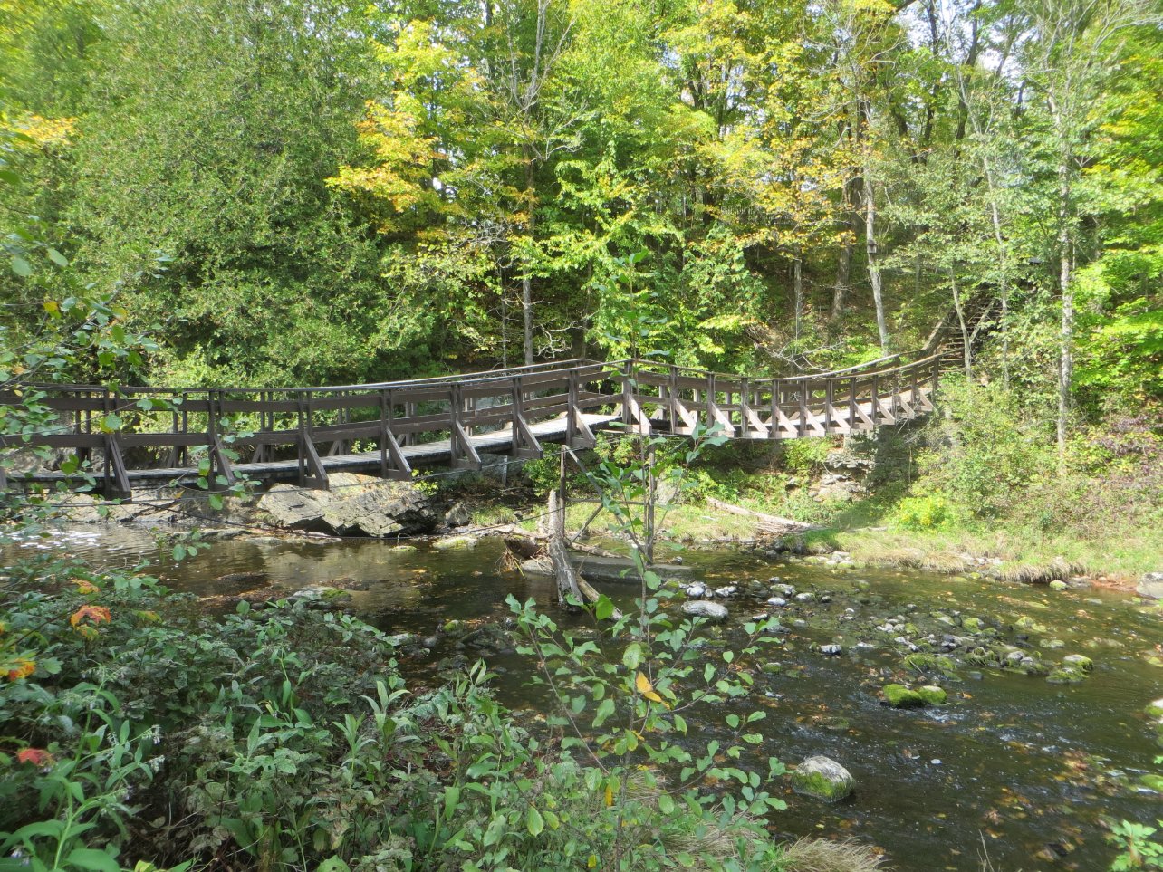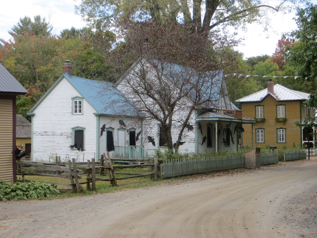 Balade pédestre le long de la rivière St François à Drummondville, et les maisons du Village Québécois d'Antan, fermé à la visite pour cause de préparation à Halloween.
