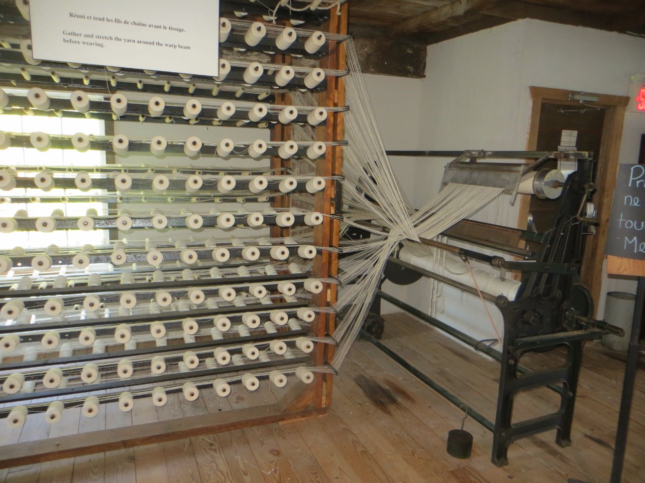 960 fils et autant de bobines pour faire une nappe de fils de chaine pour tissage !!
