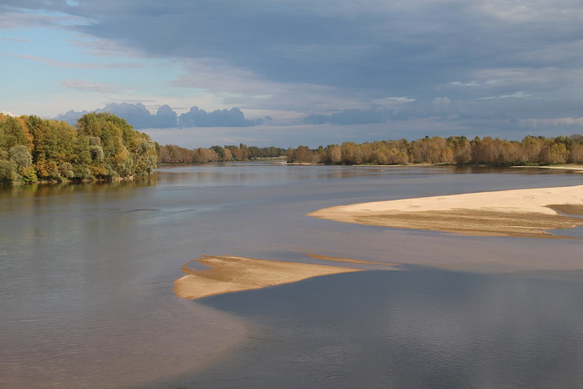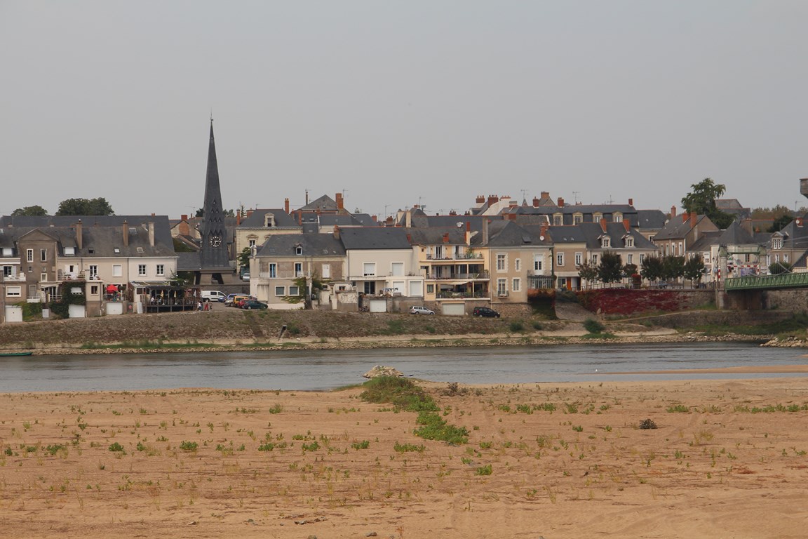 la Loire paisible en cette époque, les repaires des crues tout le long de notre balade nous indiquerons qu'elle est maîtresse de son lit.