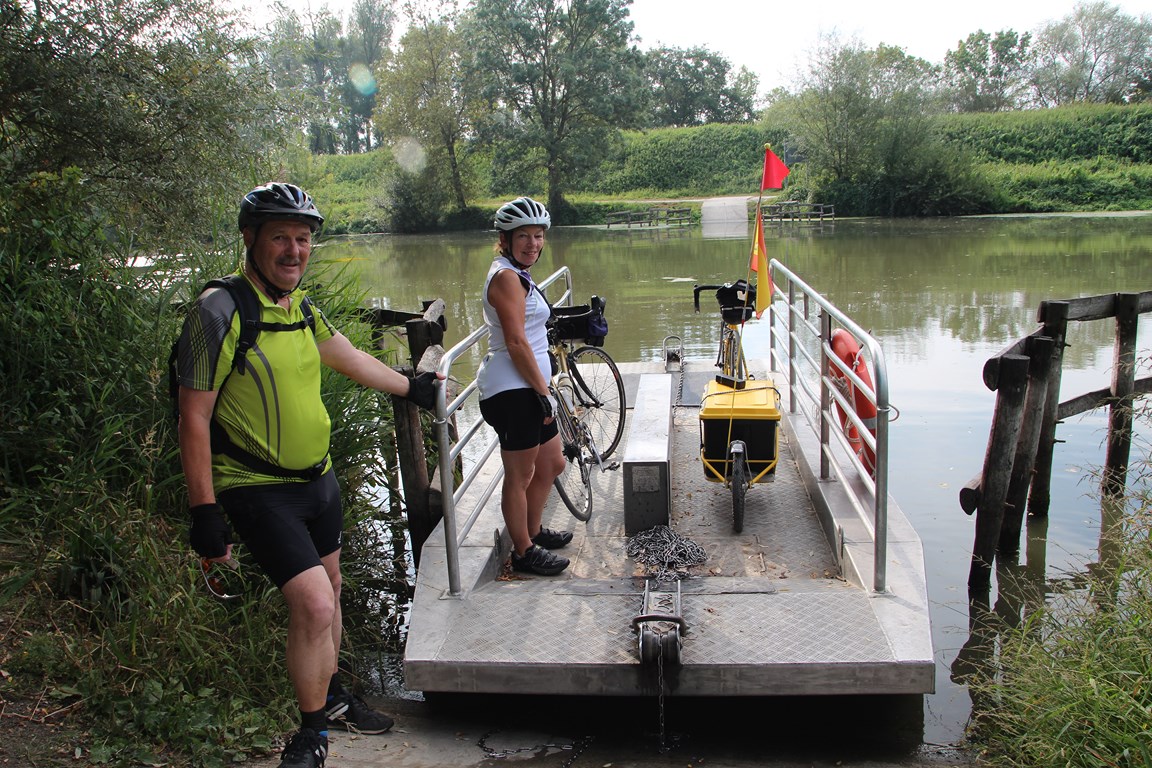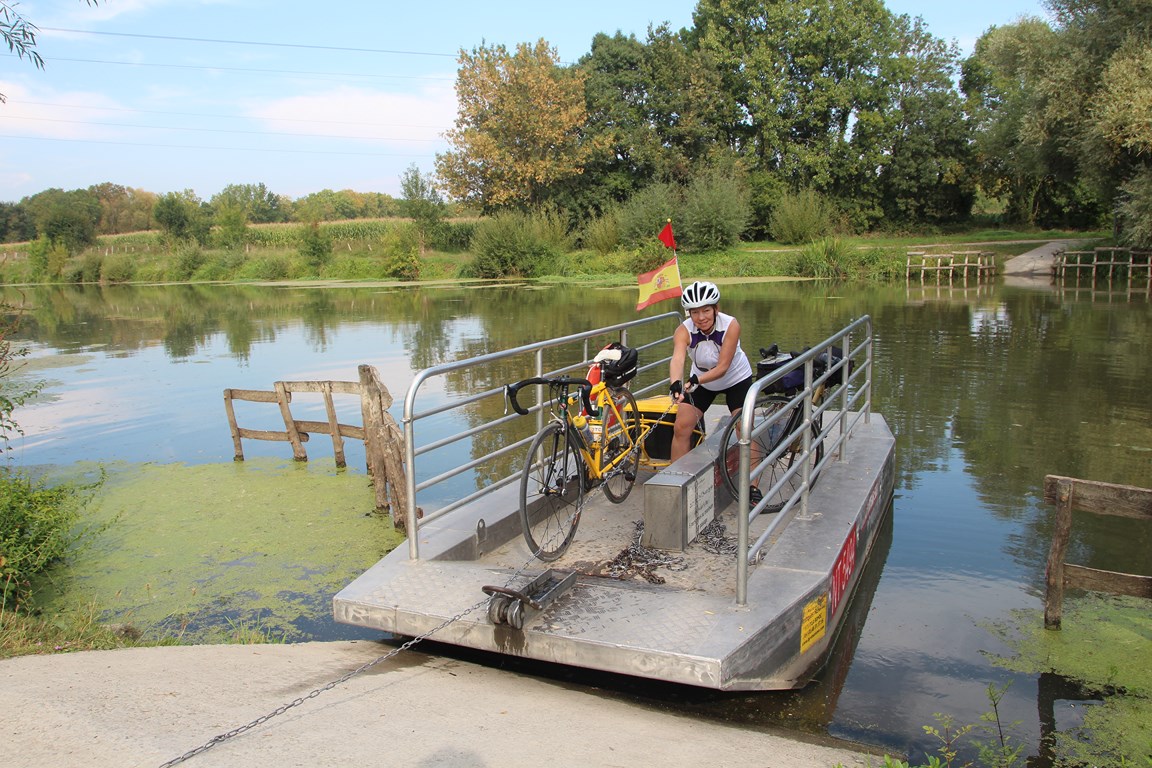 Si nous avions trouvé le circuit dans Angers laborieux, nous le regretterons pas trop longtemps le passage de l'Authion en bac :happy1: vaudra le détour merci au sympathique cyclo de nous avoir guidé au bon "port". Michelle à la force du poignée (s) :malin1: