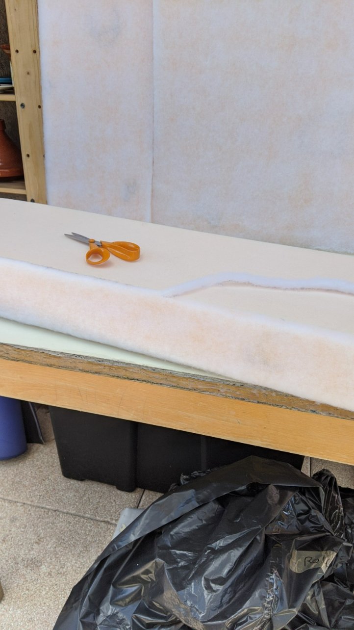 un tasseau occupe la longueur ,je pense a un raidisseur un peu chiant soit entailler la mousse ou je pense la mettre a l’inverse