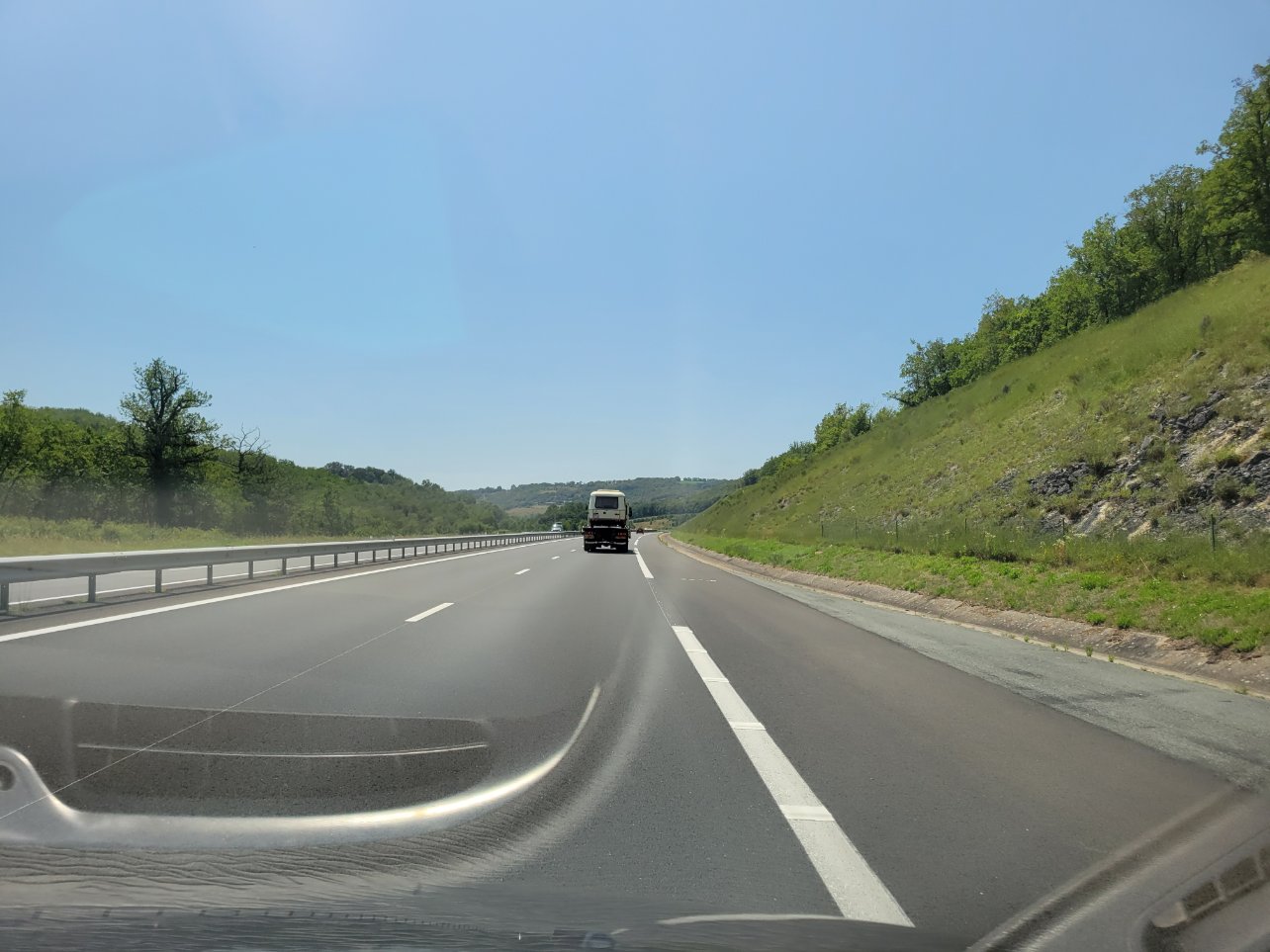 Nous partions pour Marseille pour prendre le bateau vers la Corse. Après une heure de route nous entendons un bruit bizarre de frottement venant de la caravane.
