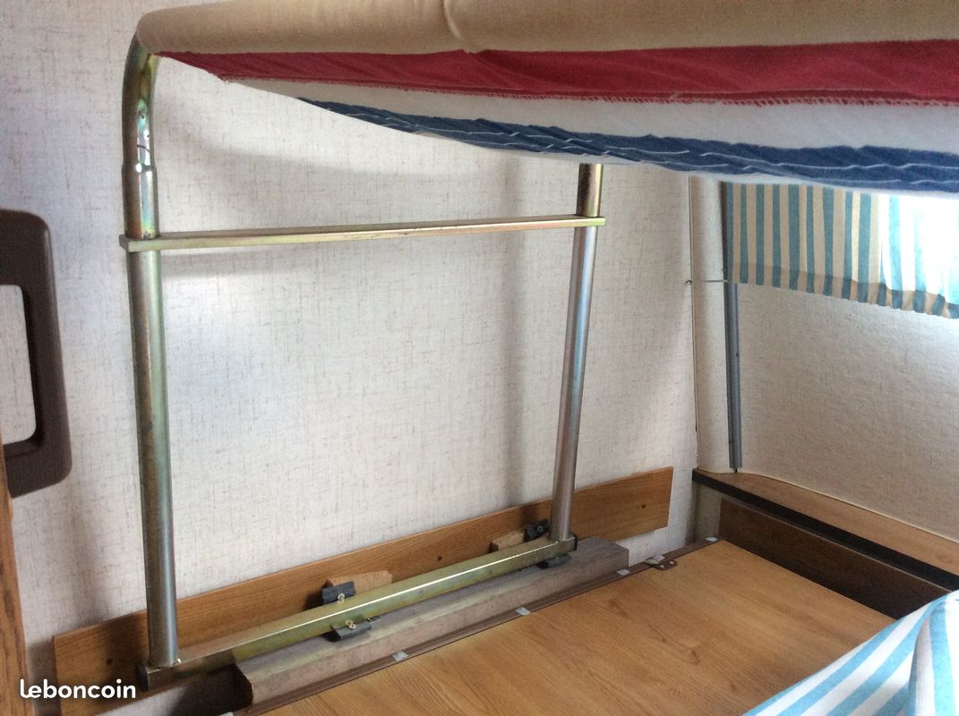 J'ai une Pan de 86 dans laquelle j'ai transformé la grande dinette en lit fixe... et je couchais jusqu'à présent mon petit-fils dans la petite dinette. Seulement voilà, un second bambin nous est venu et je vise une couchette supplémentaire. J'ai vu plus haut des sangles qui sont suspendues par un crochet au profilé alu qui courre à la jonction de la toile du toit ouvrant...