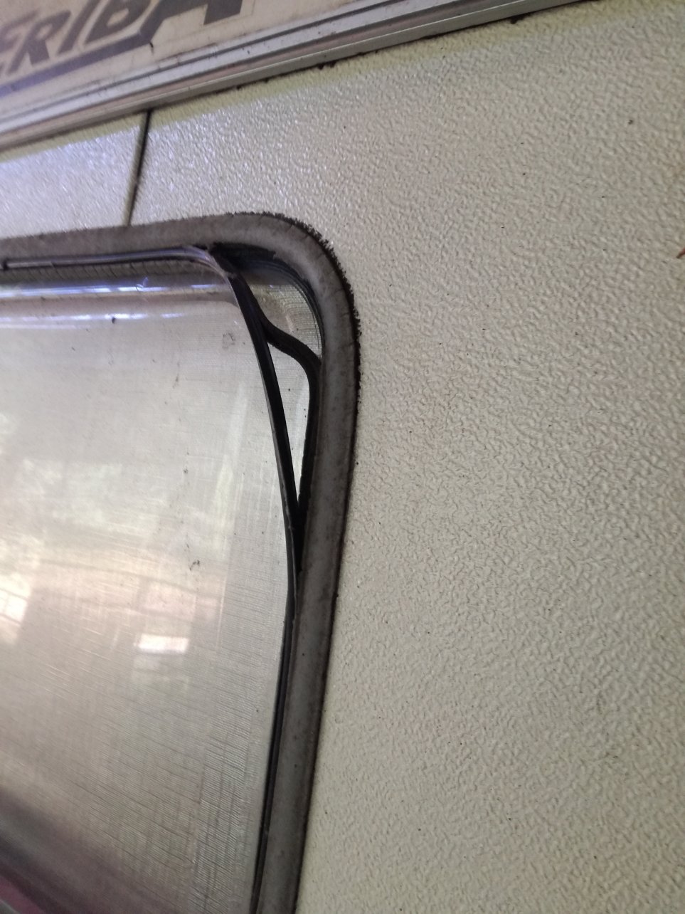 La nuit dernière il a plu et c'était la première fois que j'avais la caravane sous la main un jour de pluie. Aucune gouttière mais j'ai quand même investigué au niveau de la baie avant en faisant bailler le joint à l'intérieur: