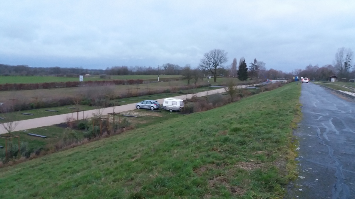 "Nuit d'étape au Lac du Der à l'aire de camping car de Chantecoq à 4€ la nuit fermée par des barrières et tranquille" 2ième photos.