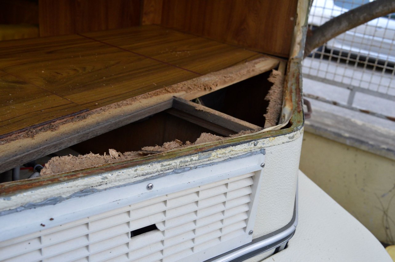 Et le tour en bois est complétement pourri. Ça n'a pas du aider pour le châssis, en absorbant l'humidité :rougefaché: