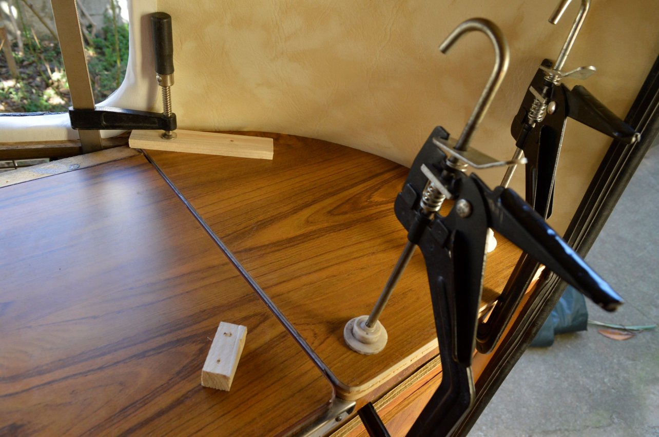 Après on a coupé les deux bandes qui ont servies au maintient de la vitre sous pression et test sur la caravane.