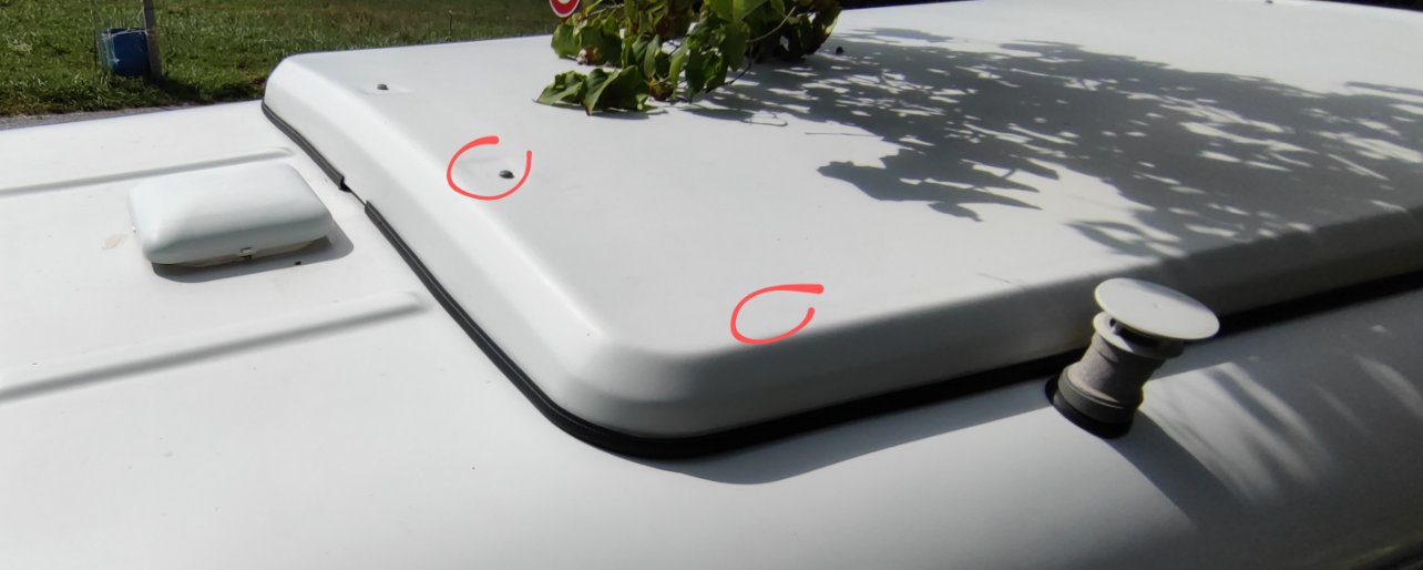 Nous avons dans notre caravane des infiltrations d'eau et des auréoles qui s'agrandissent à l'intérieur tout autour du joint central. Quand il pleut, ça mouille vraiment à l'intérieur et c'est un peu le stress quand ça arrive en vacances avec nos enfants.