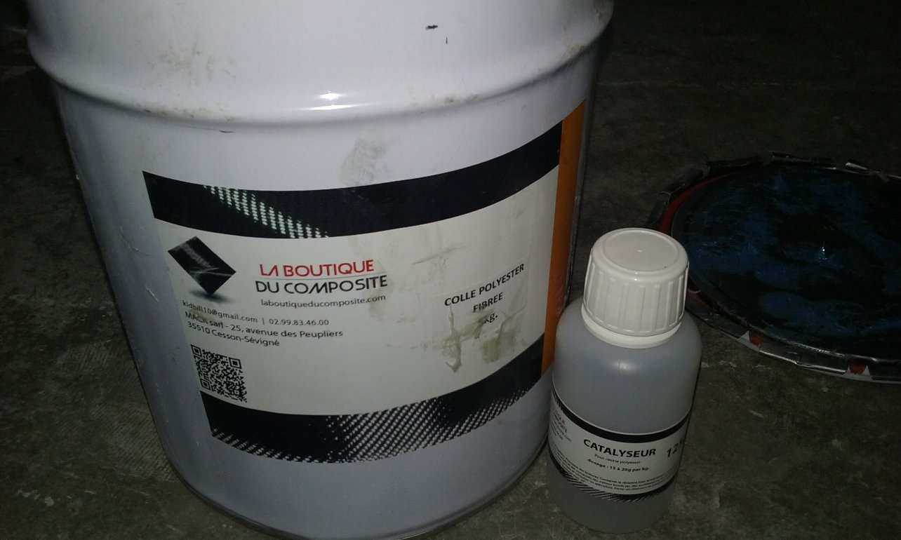 Il fallait donc une colle qui soit compatible avec le bois et la fibre de verre et qui résiste à la chaleur, humidité, les variations de températures etc...