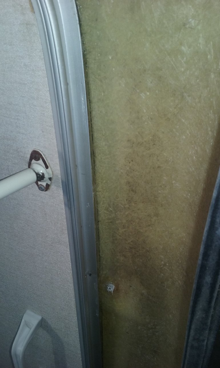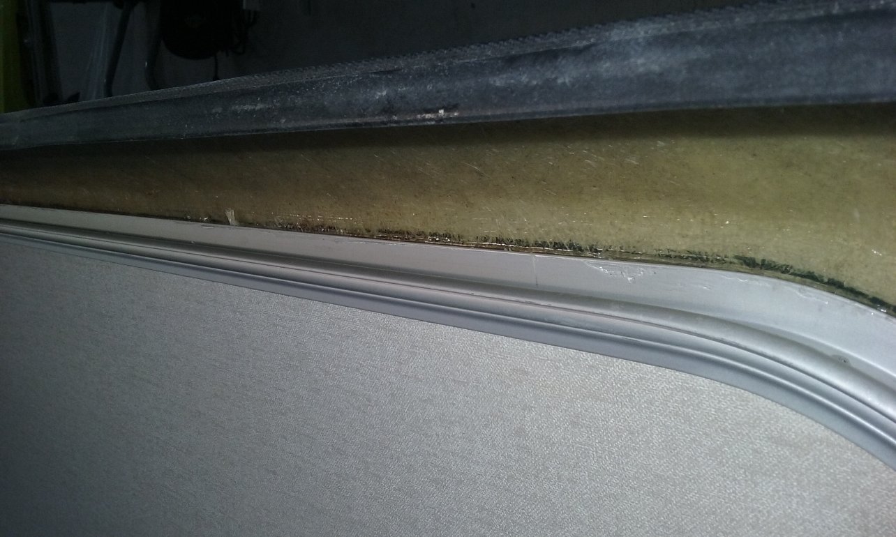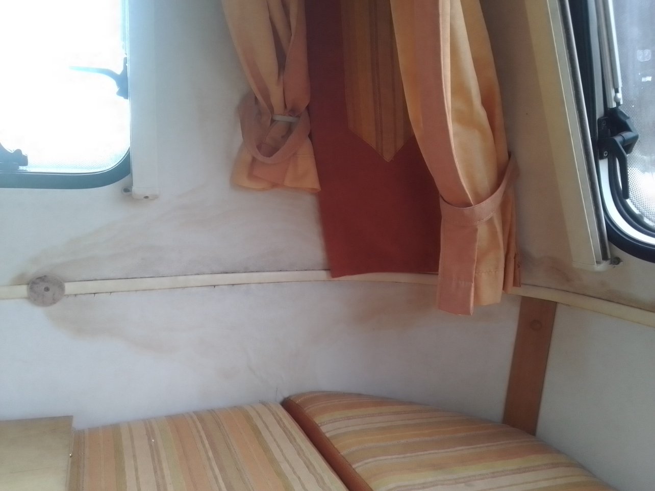 Il semblerait que ton infiltration vient de la partie haute, jonction tôle champignon ou vers la partie haute de la baie (arrondi vers le rideau), ça coule dans l'arrondi de la caisse partie haute et stagne sur la jonction du milieu de la caisse derrière la toile, NON ?