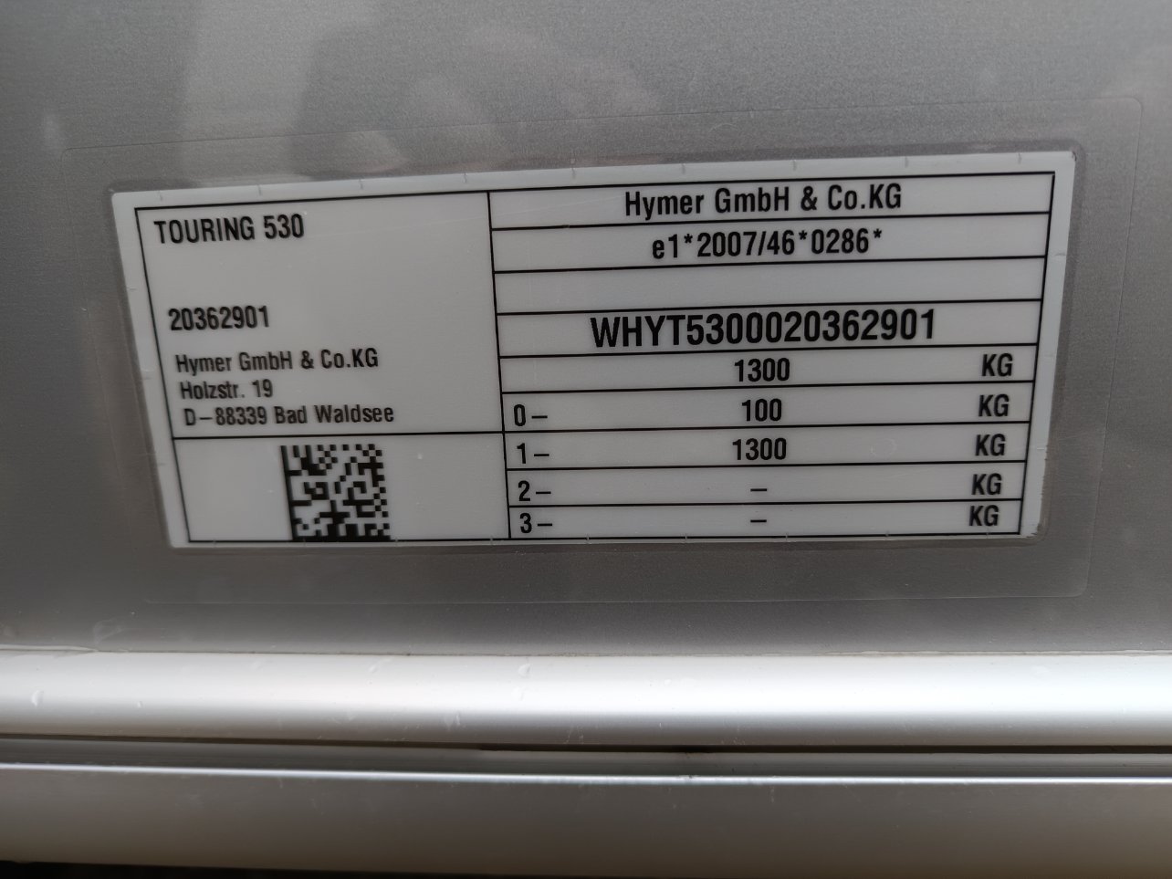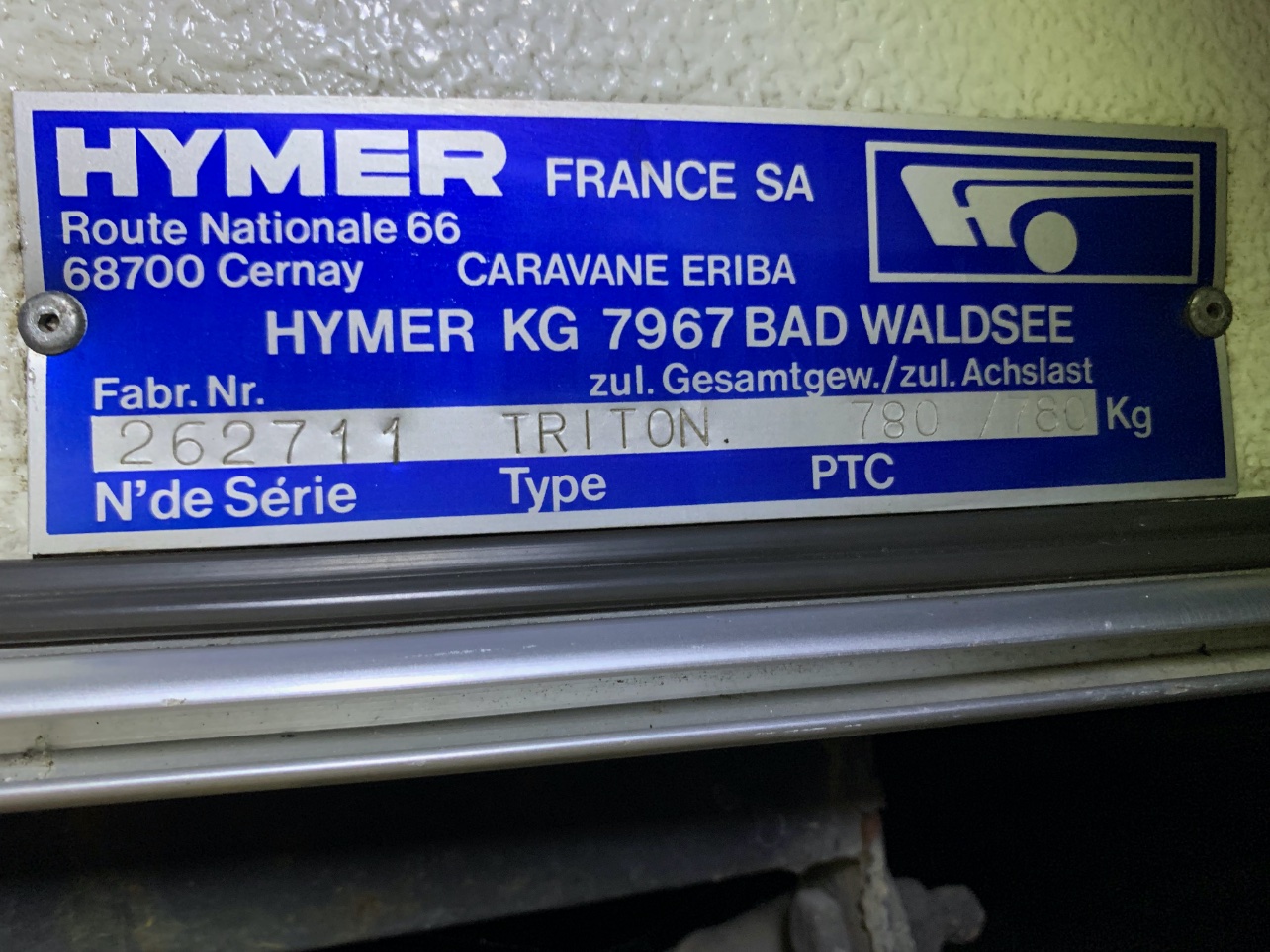 Veuillez trouver ci après la plaque d'identification de mon Eriba Triton 430 60ème édition de 2019.