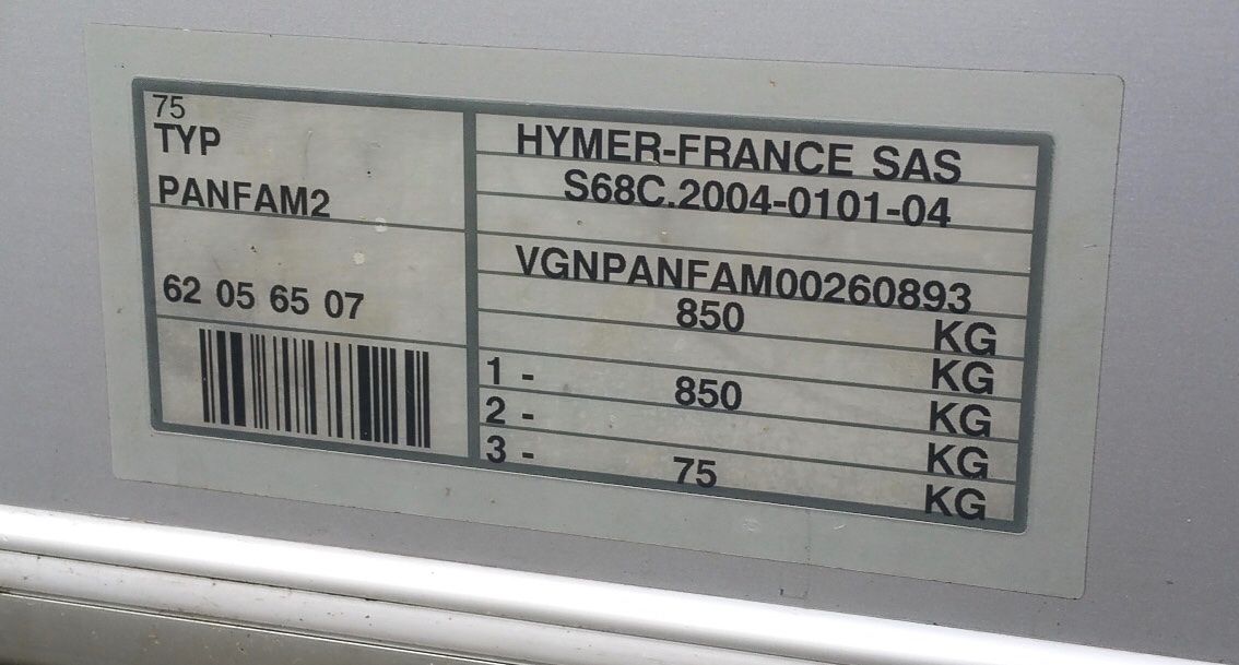 Si je lis bien la plaque, il s'agit d'un PTAC de 700 kg, mais le 75 kg en 3 ?? La flèche ?
