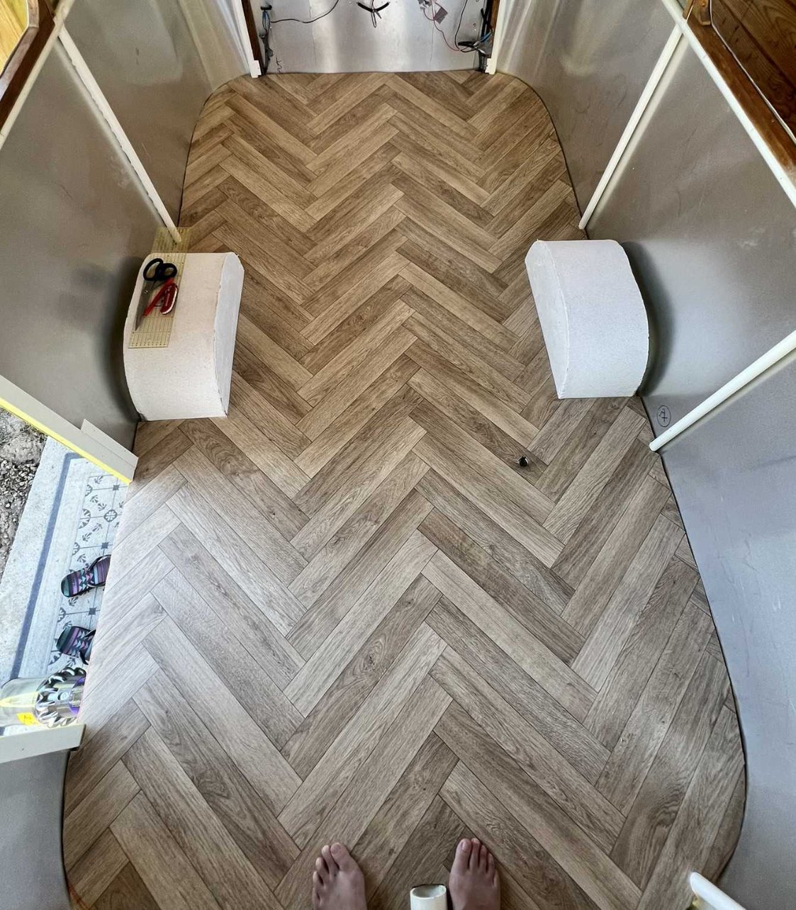 Le plancher étant posé, je me suis jetée sur mon lino, reçu il y a plusieurs jours mais pas encore déballé...