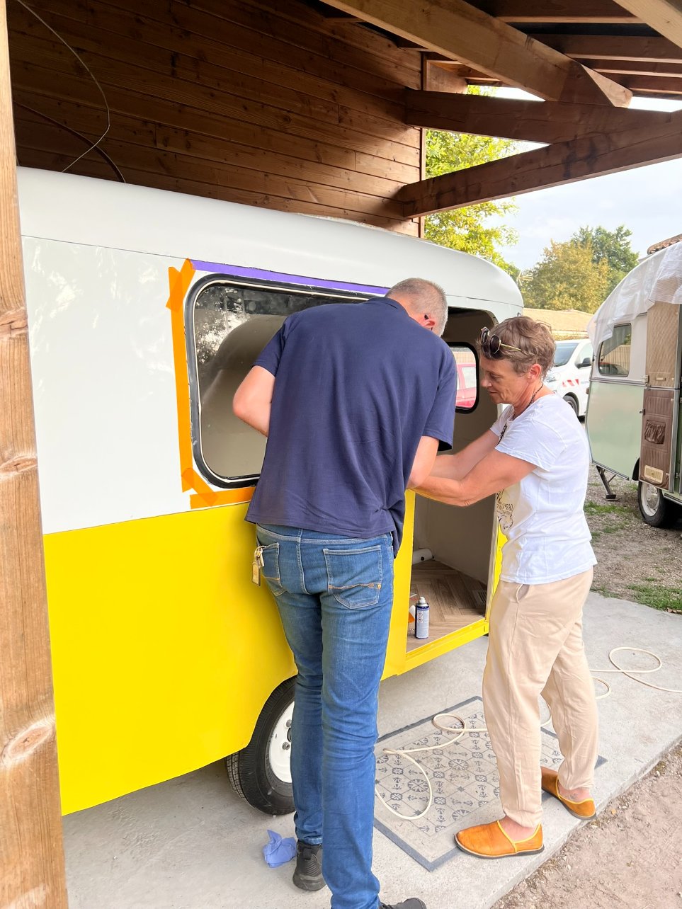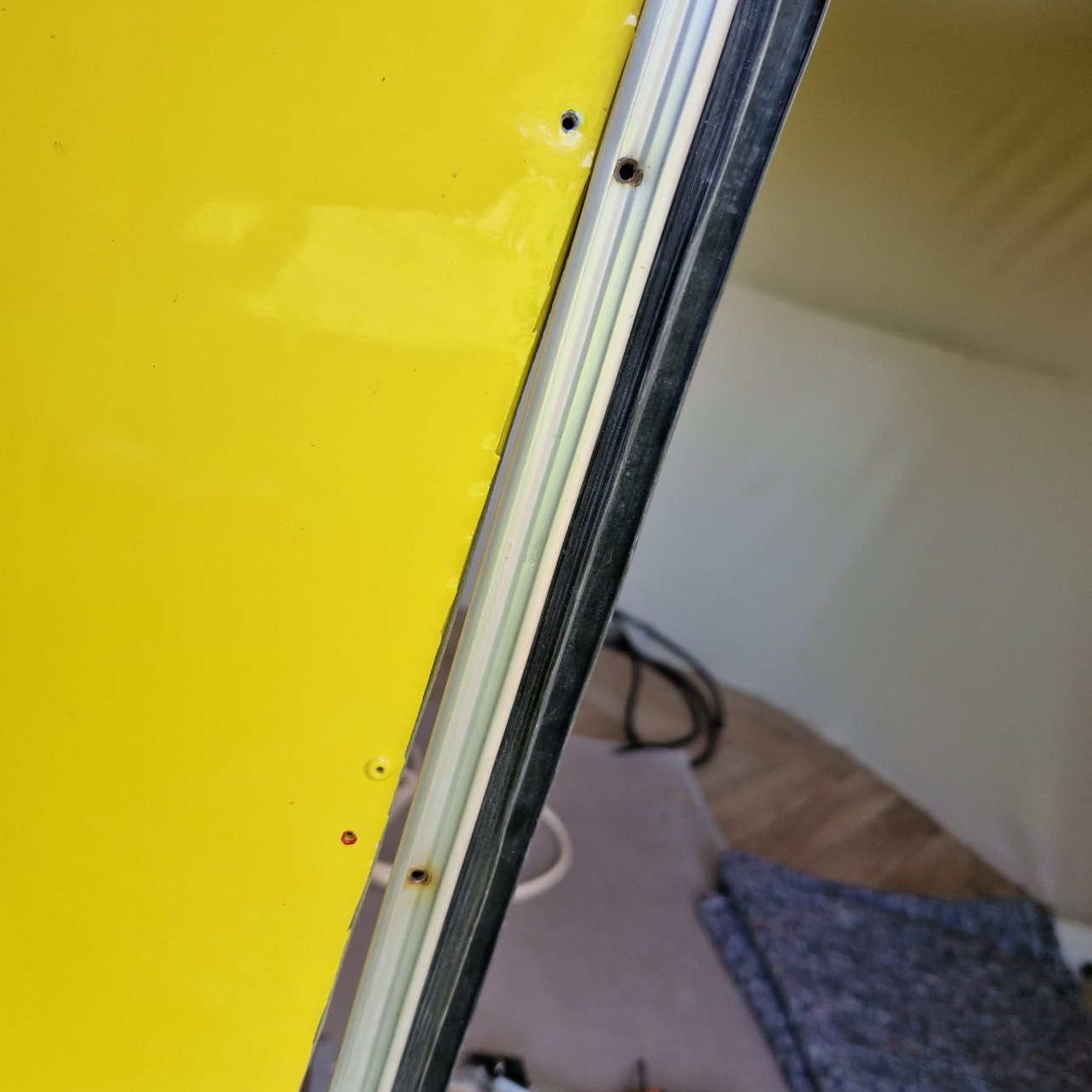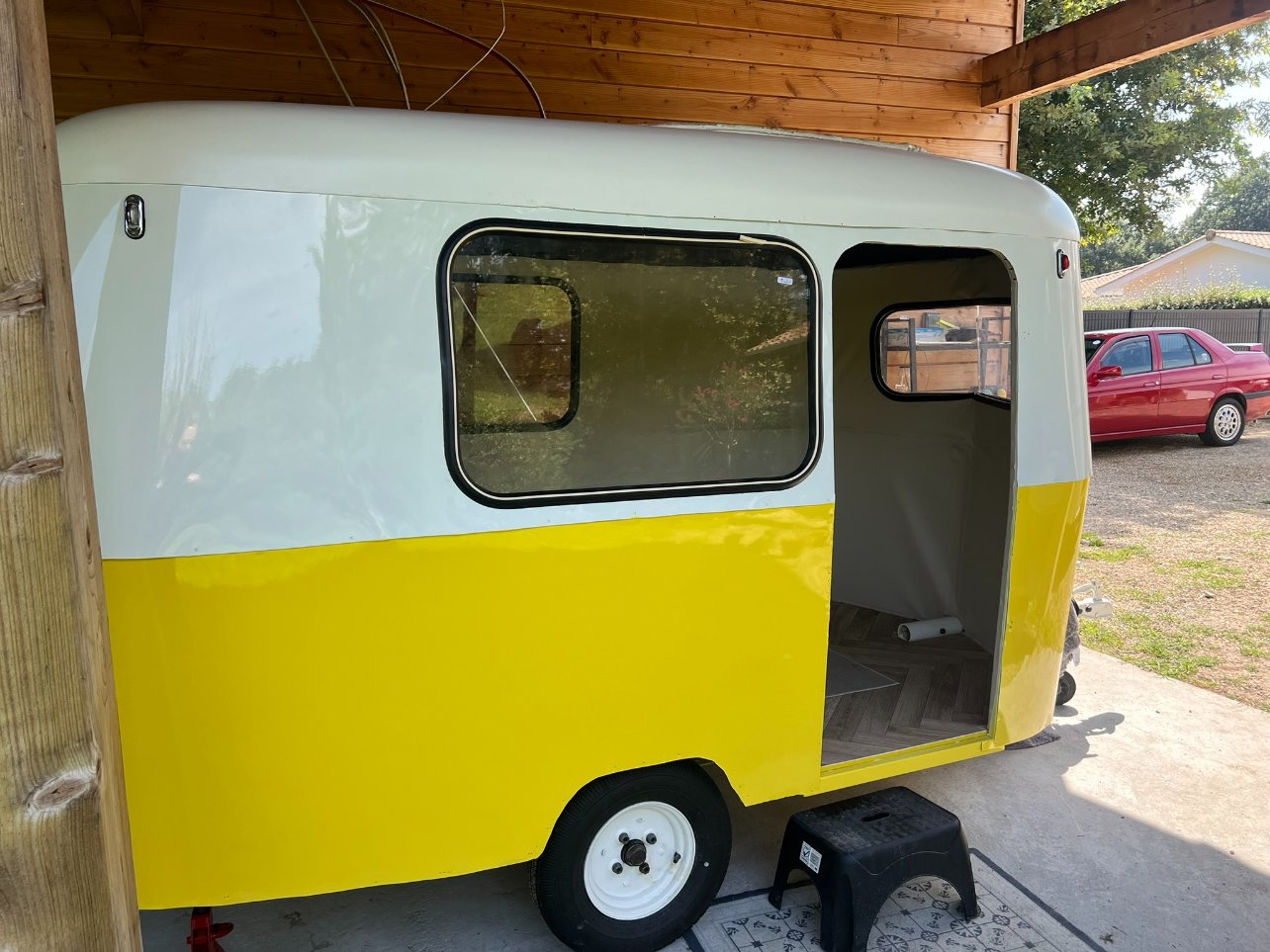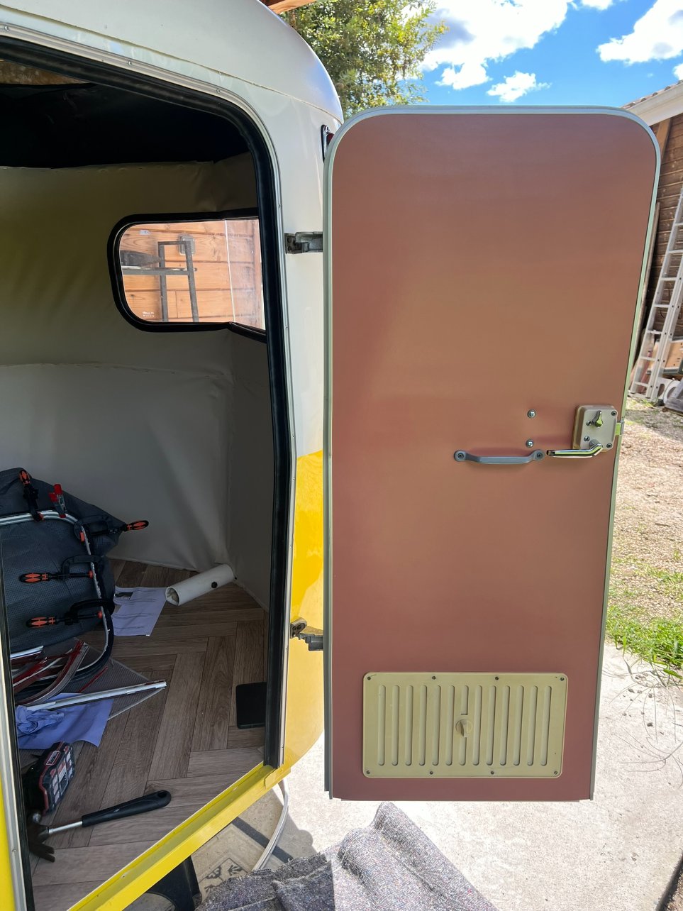 Vu ce qu'il reste à faire, j'ai peur qu'elle ne puisse rouler vendredi même 3 km pour notre rétro camping car pour cela il faut absolument: finir les vitres (sauf peut-être l'arrière), mettre la porte, fixer la rehausse (même si pas fini et la toile pas mise)... je suis femme de challenge mais là... compliqué.