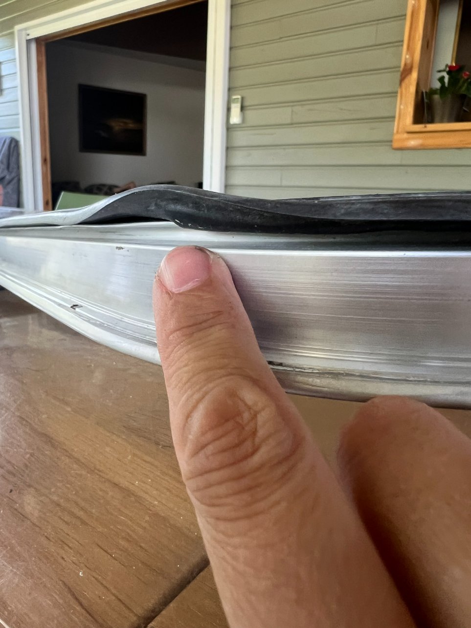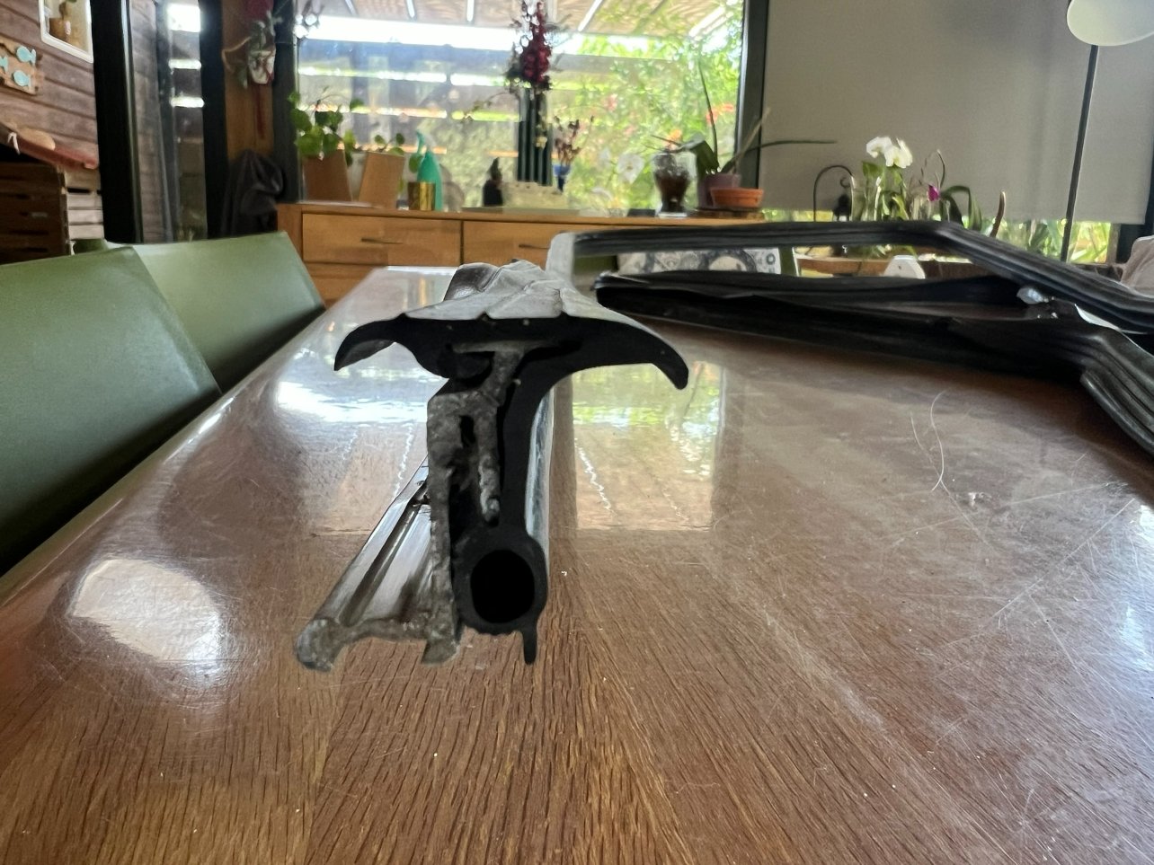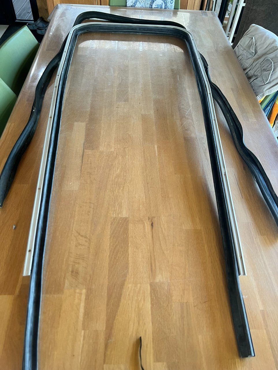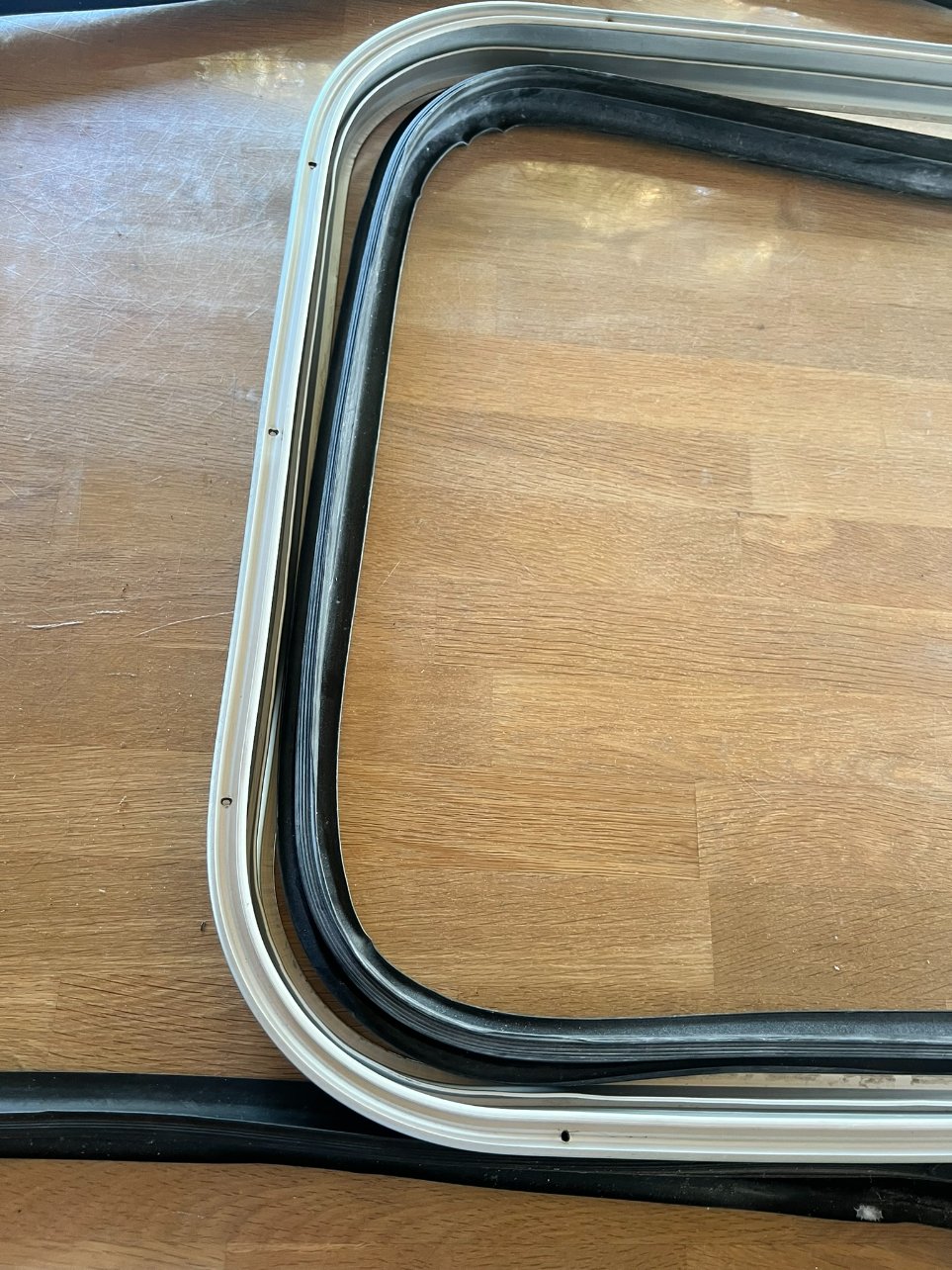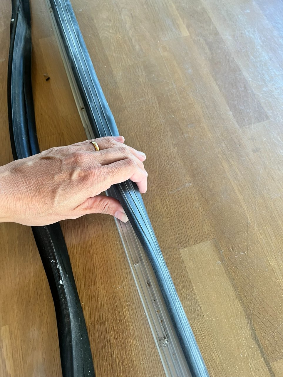 Pour cette fenêtre il ne me reste plus qu'à coller bout à bout le joint, à l'intérieur et à l'extérieur, je le ferai quand les deux autres seront terminées car j'ai qu'une cartouche de Sika noir et pas envie qu'il sèche.