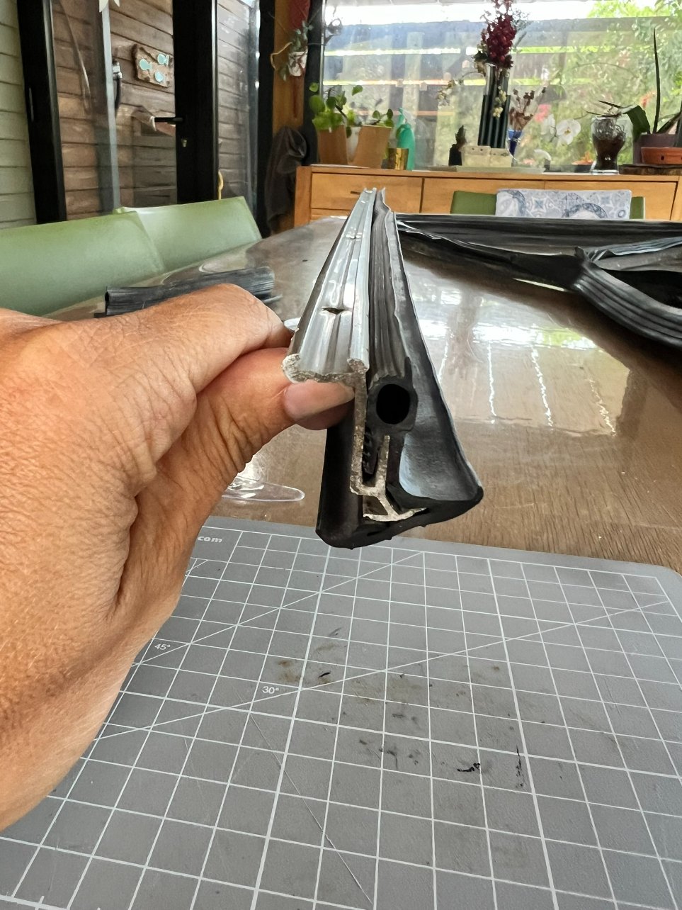 Dernier point, pour la baie avant, j'ai coupé le joint aux angles comme sur le tuto d'Eribasar, ils disent qu'on peut couper ou laisser chevaucher, je pense que je vais laisser le chevauchement, je ne trouve pas ça gênant et ça m'évitera des bêtises de coupe. Si vraiment il faut le couper je serai toujours à temps de le faire plus tard!