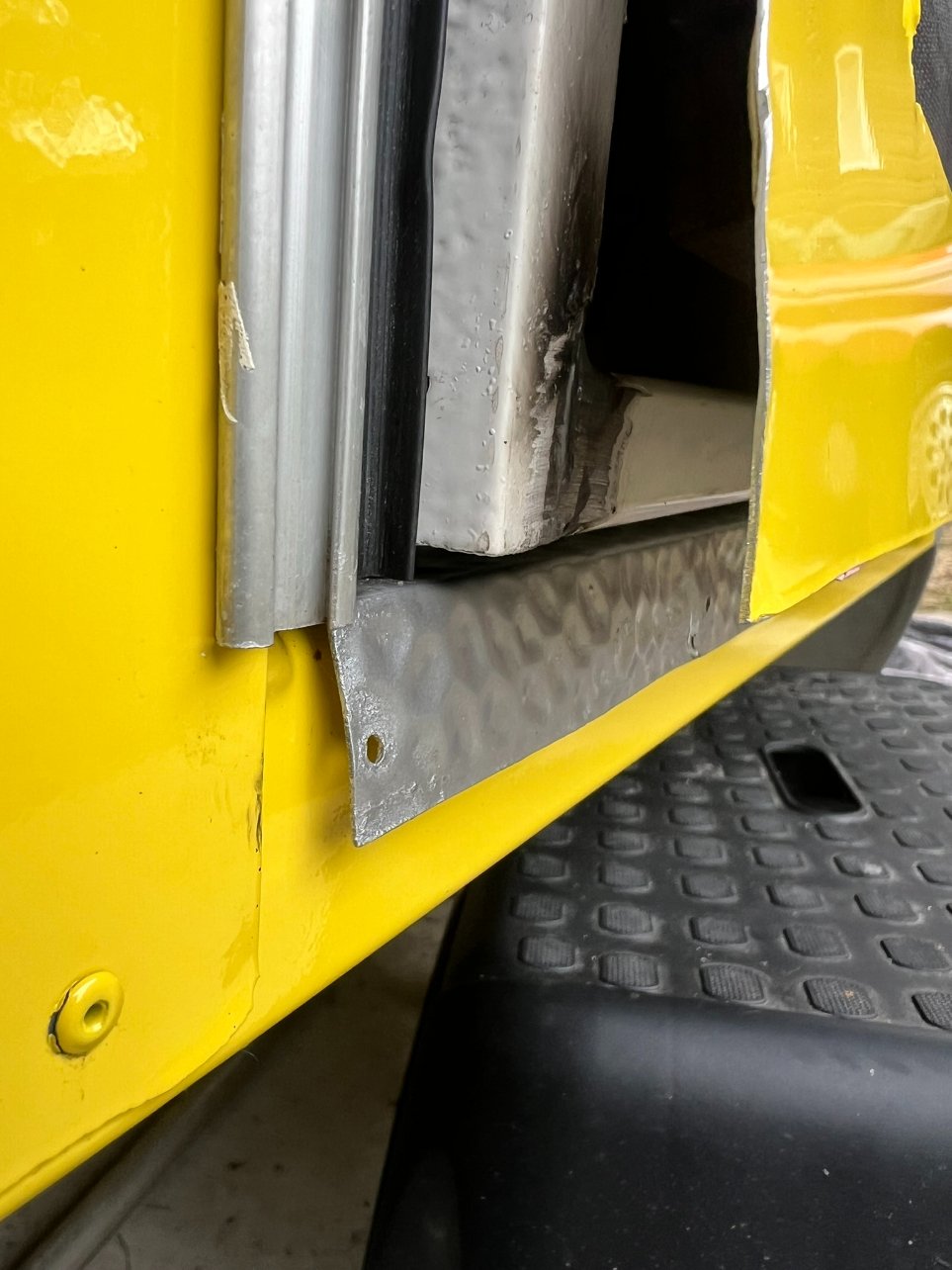 Vous allez me prendre pour une radoteuse, mais bon, le bas de la porte a été changé par le soudeur, comme le seuil de porte...