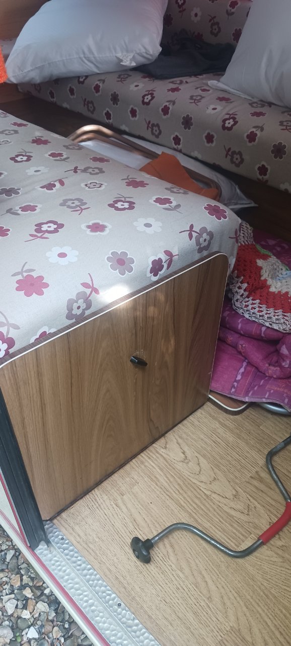 Ce matin en cherchant autre chose, je suis tombée sur ce système qui sert à tenir les tables dans les VW aménagés ou les frigos dans les caravanes :