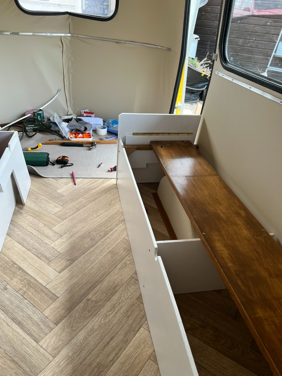 J'ai bien un tasseau pour le lit. A l'arrière il n'y a que les placards en bois, les reste c'est le vinyle tendu d'origine. Quelles épaisseurs tu veux ?