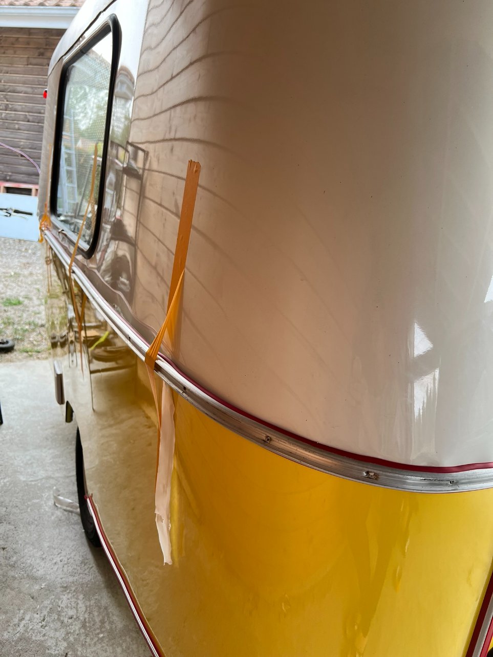 Photo 1 vue de puis l'intérieur de la caravane : jointure des joints