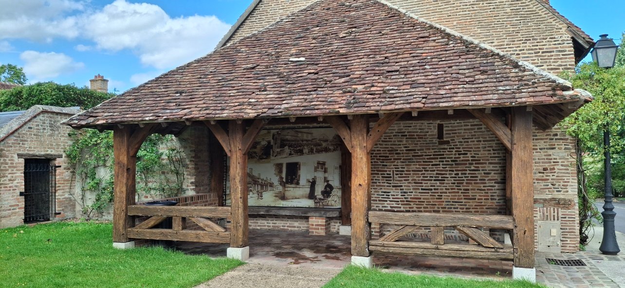 Quelques masures solognotes du charmant village de Chaumont sur Tharonne (13 km de Nouan le Fuzelier) et comme nombre d'églises dans le coin, un joli "caquetoire" ou "préau à palabres" à proximité.