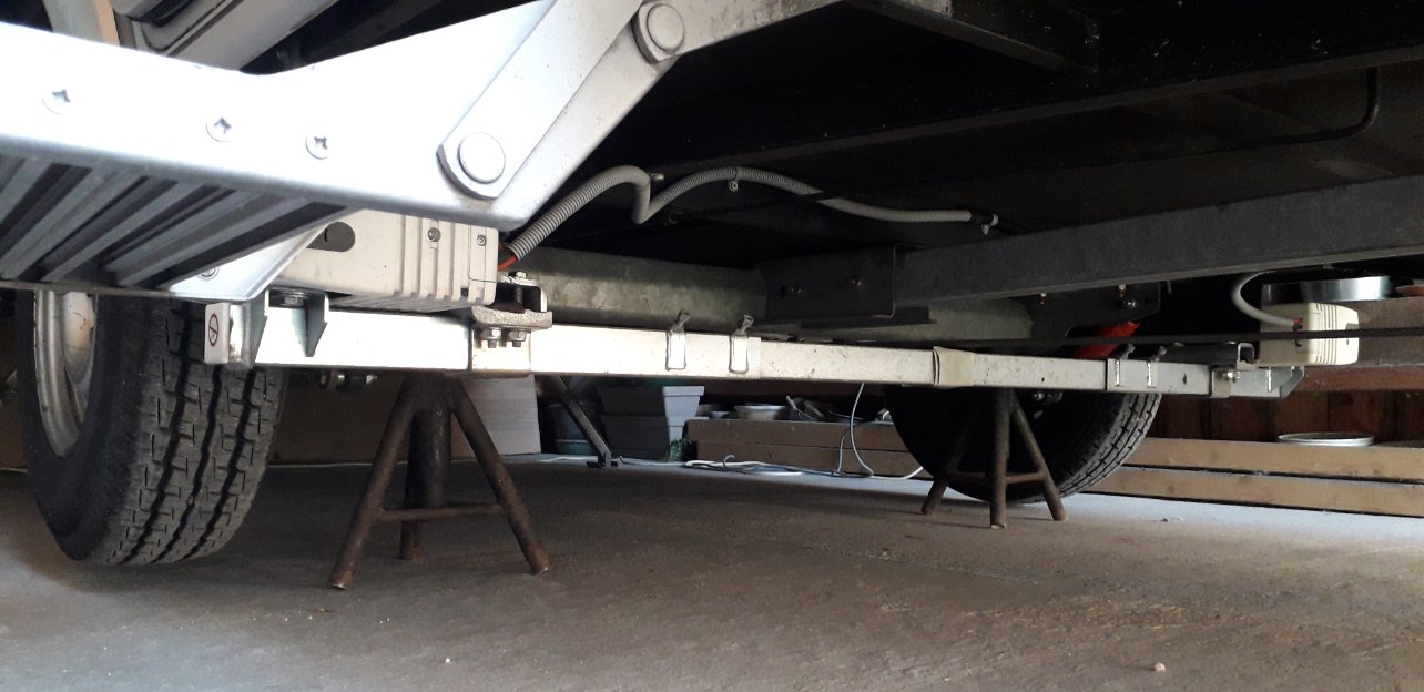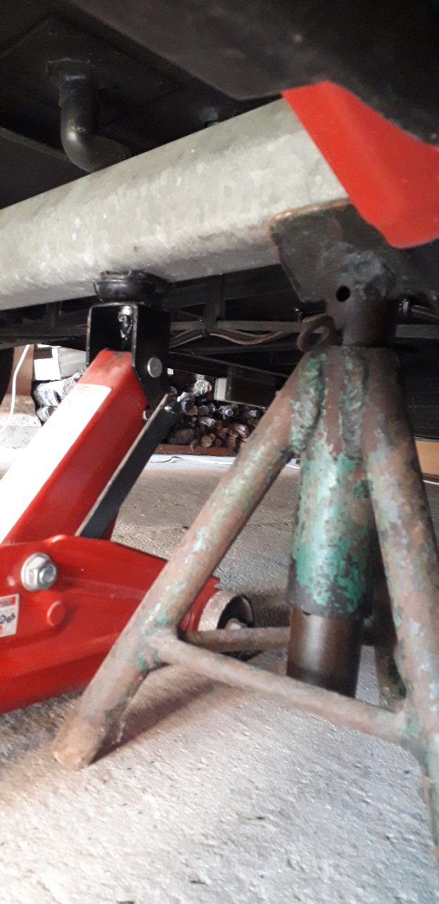 En photo c'est mieux, tu lèves sous l'essieu jamais sous la structure, et tu mets tes chandelles sous l'essieu au plus près des roues.