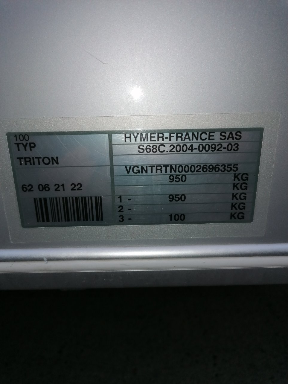 Voici la plaque de mon Eriba triton 430 de 07/2022