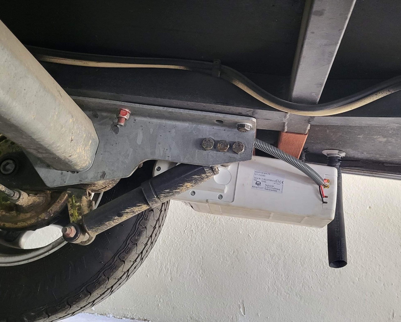 Et je ne dispose que de 28 cm entre le pneu et le marche pied. A ce que j'ai lu, il faudrait 38 cm.