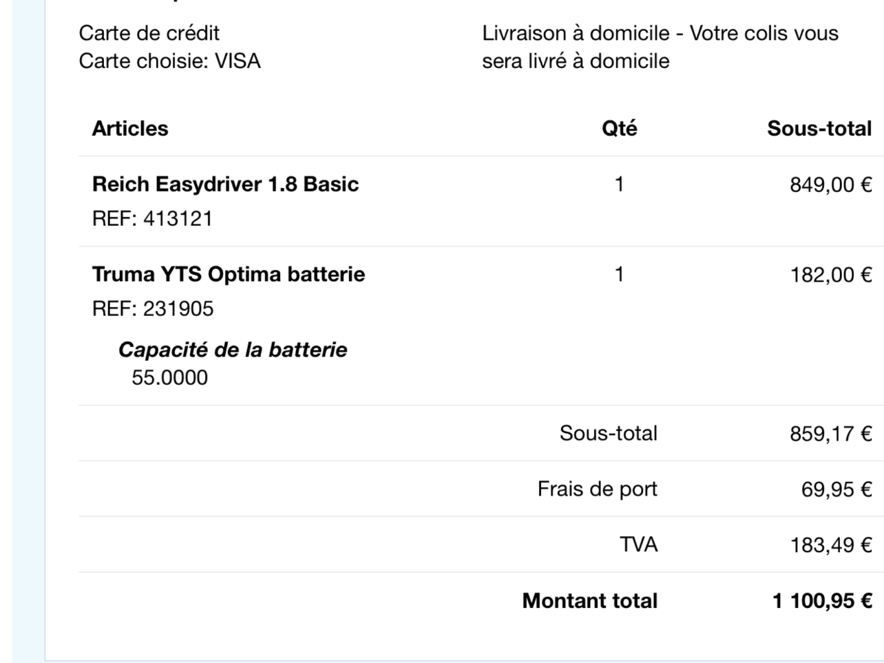Donc le tout fait 1258€, j'espère ne pas m'être trompée mais les dés sont jetés. Plus qu'à attendre la livraison et au boulot, je viendrai ici rendre compte...