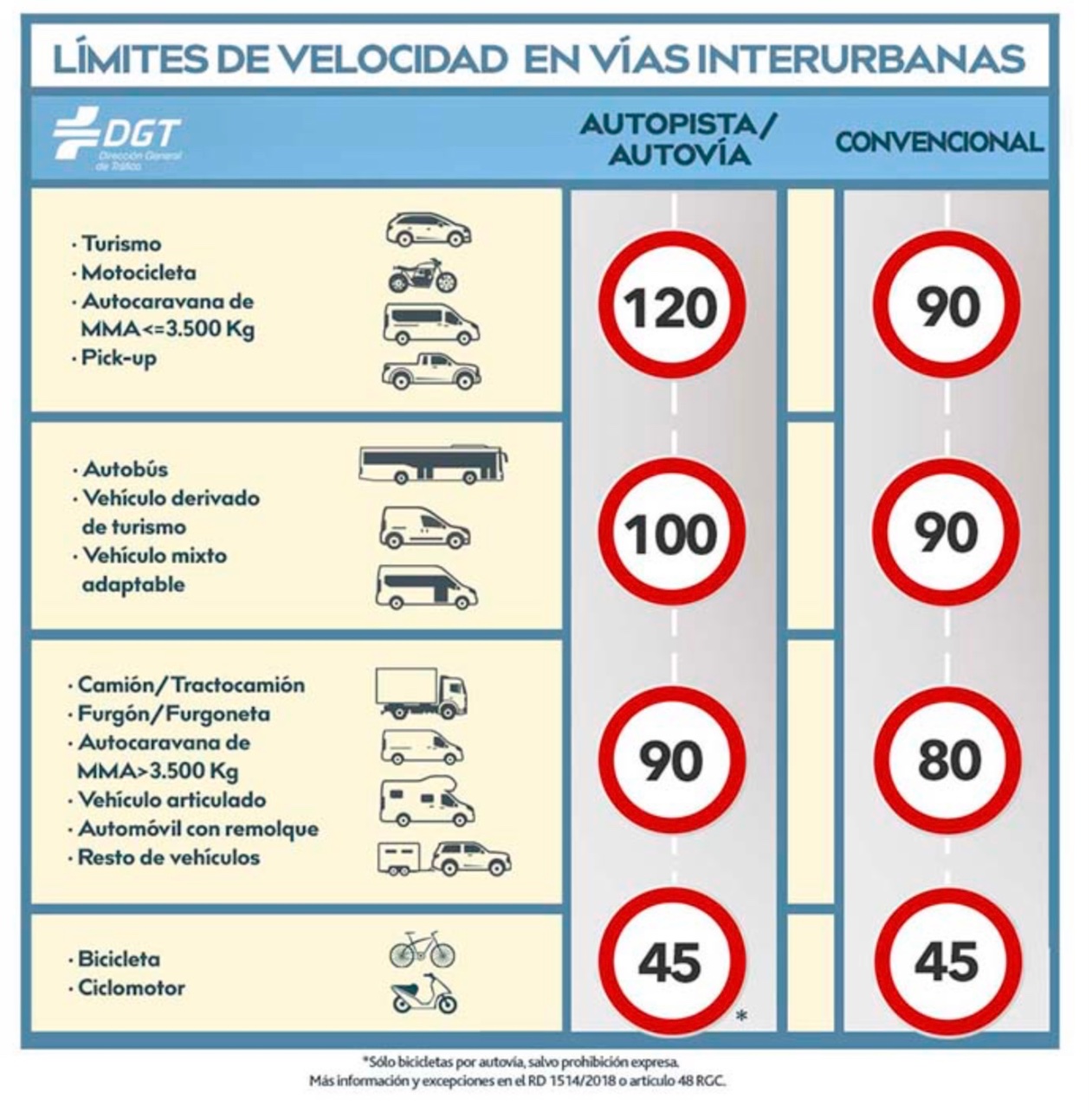Espagne pas de poids, mais limitation avec ou sans remorque.