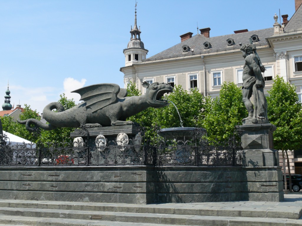 J'ai quitté Klagenfurt et sa fontaine au Dragon réalisée entre 1582 et 1593 dans un bloc de chloritoschiste