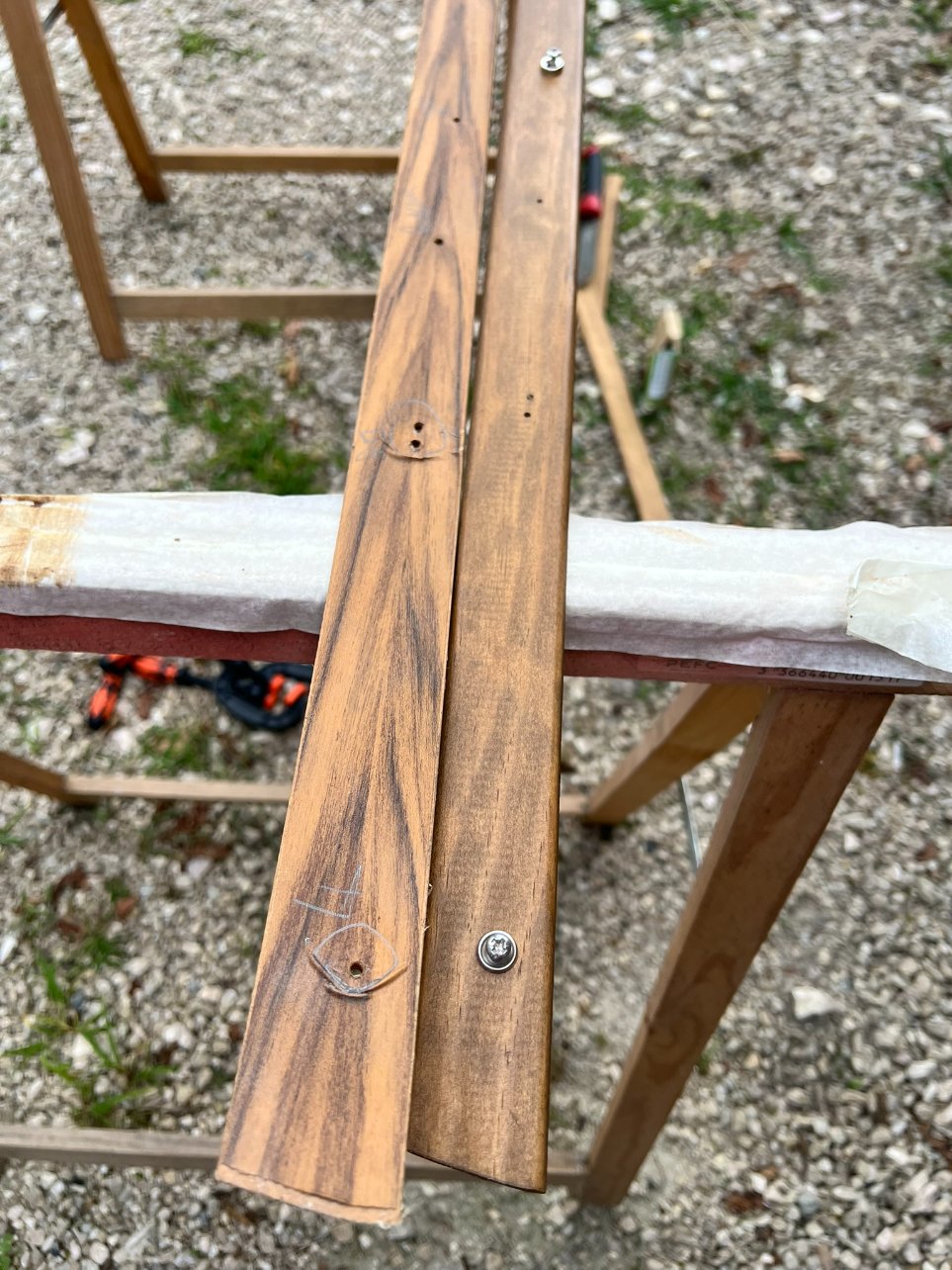 Le deuxième est presque terminé, plus qu'à le fixer et le mettre en forme (j'ai un bel arrondi). Voilà pour un beau vendredi, je pensais fixer les assises au sol mais j'ai eu un gros pépin...