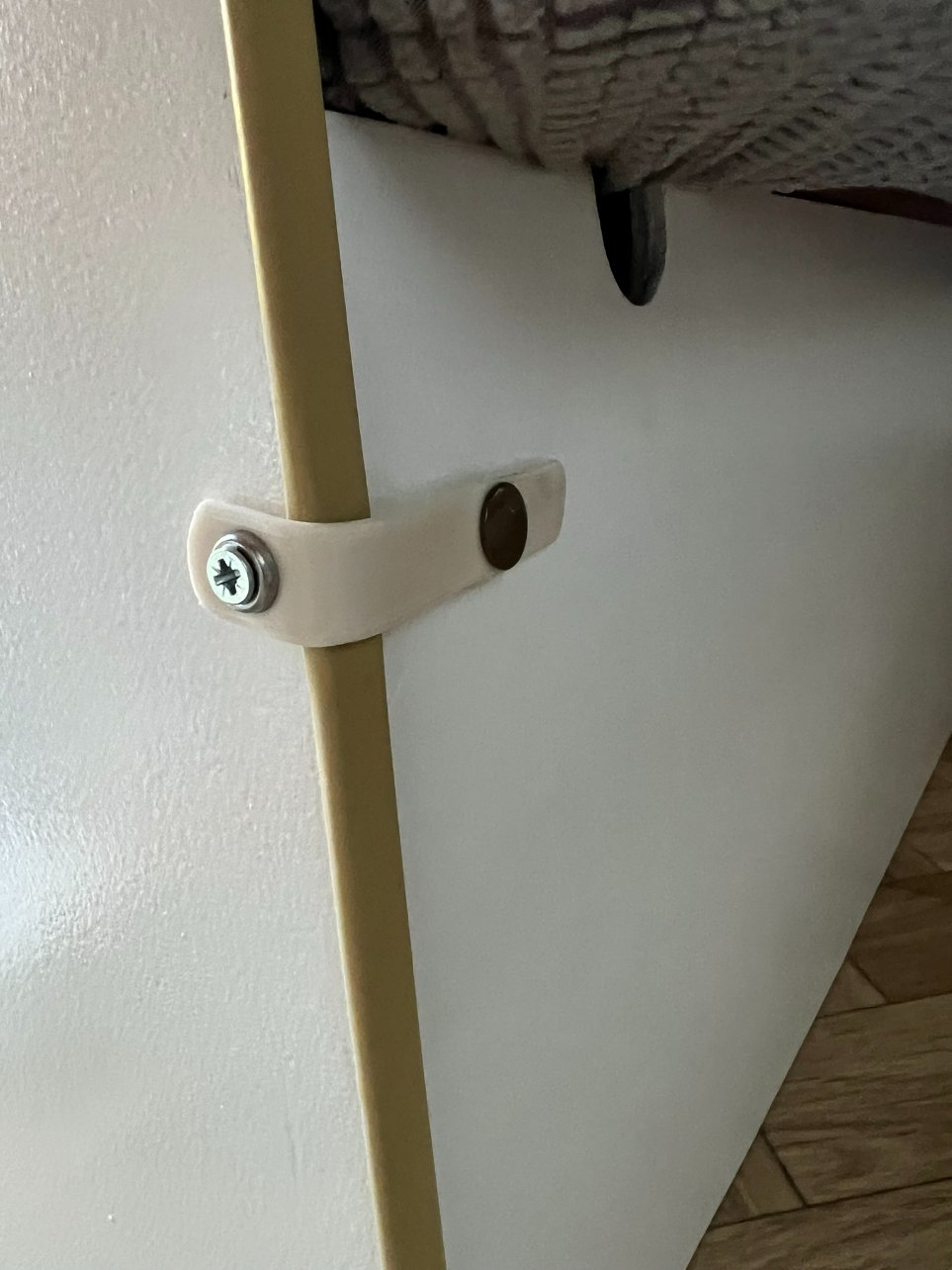 C'est collé, j'ai juste rajouté une agrafe en soutien au début et à la fin. J'ai aussi rajouté un système de fermeture pour la tablette et éviter qu'elle bascule, l'écrou papillon suffit mais à terme j'aimerai l'enlever et boucher le trou. En plus pour ce système j'avais déjà un trou d'un côté et la fixation du support de l'autre sur lequel j'ai rajouté le système de pression. DETAILS FINITION:
