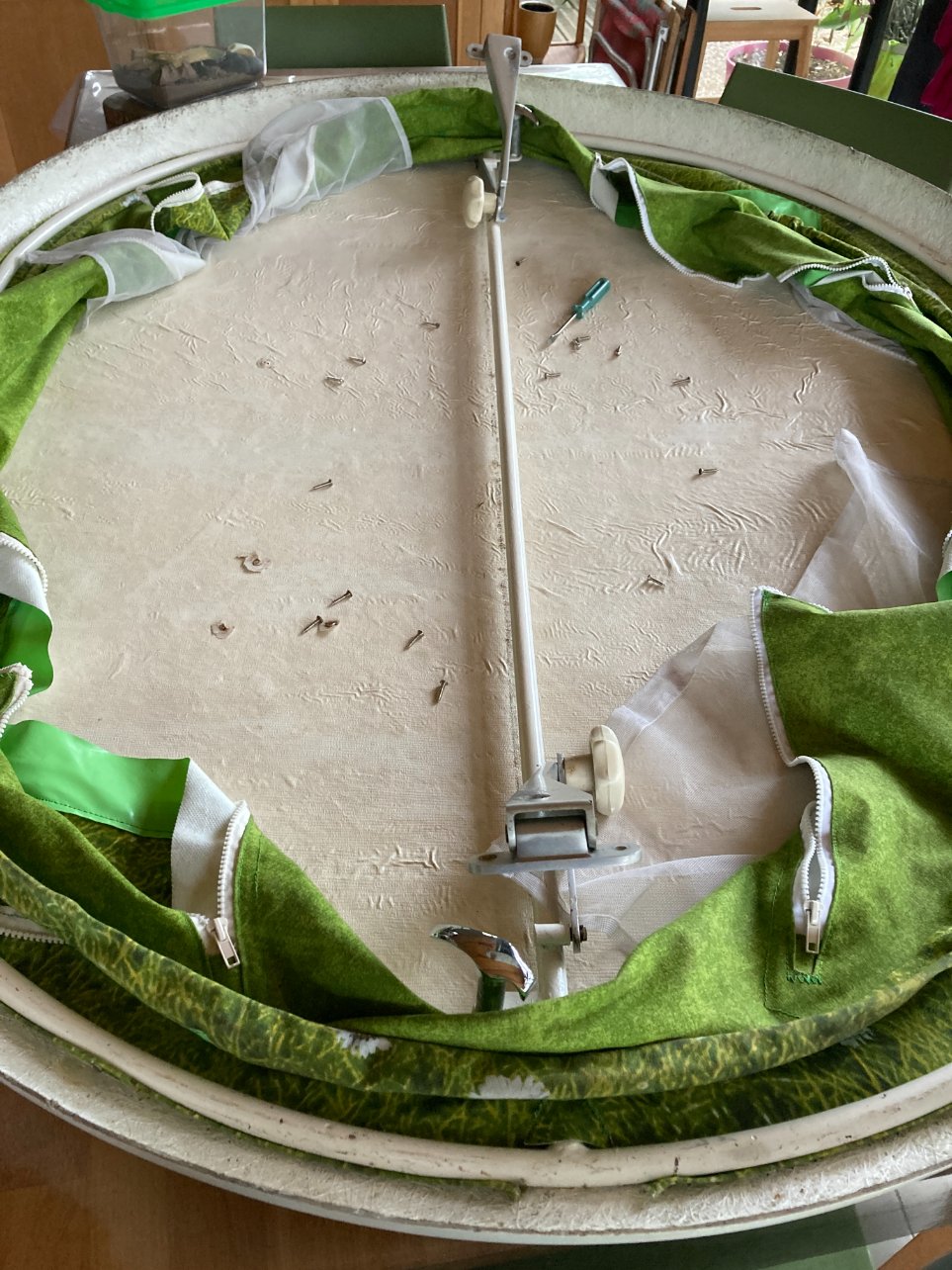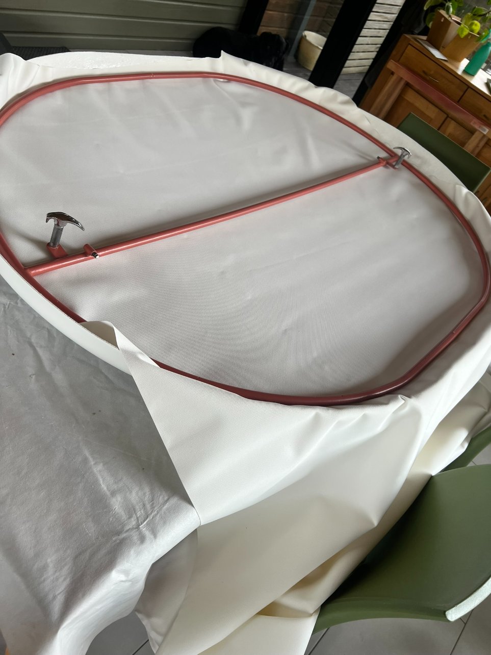 Bon moi je suis plutôt du genre réveil à 6h même dans le noir mais c'est une super idée. Tant que la toile n'est pas encore en place c'est peut-être l'occasion de vérifier que les "scratchs" sont suffisant pour supporter une deuxième toile et d'en rajouter au besoin!